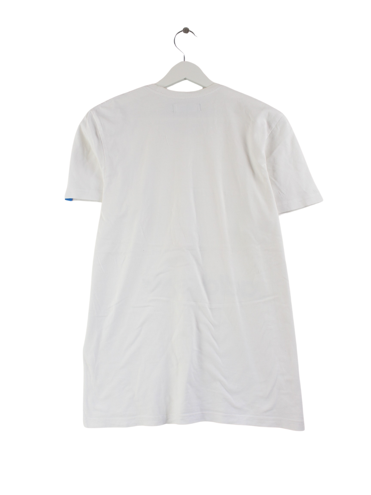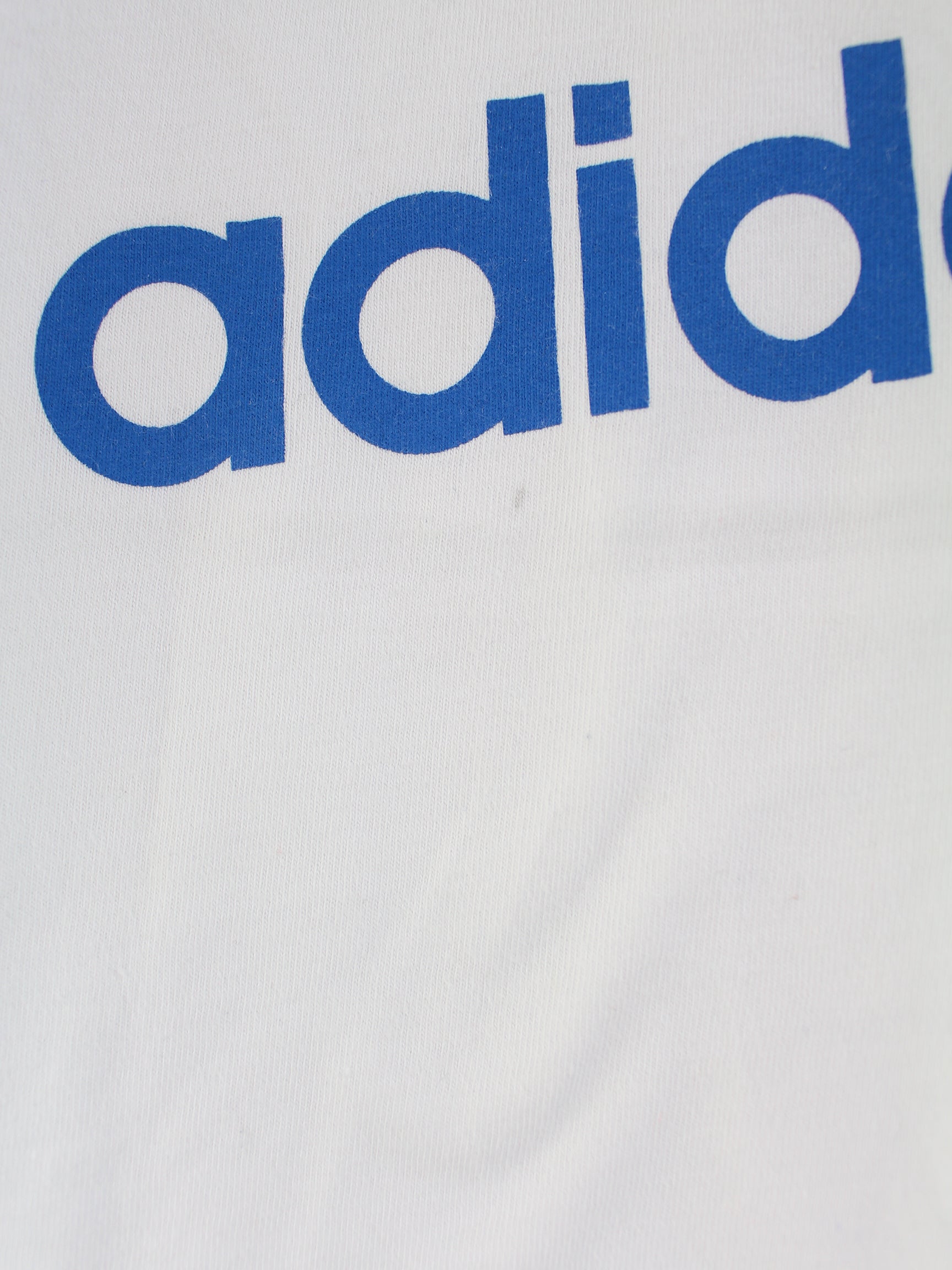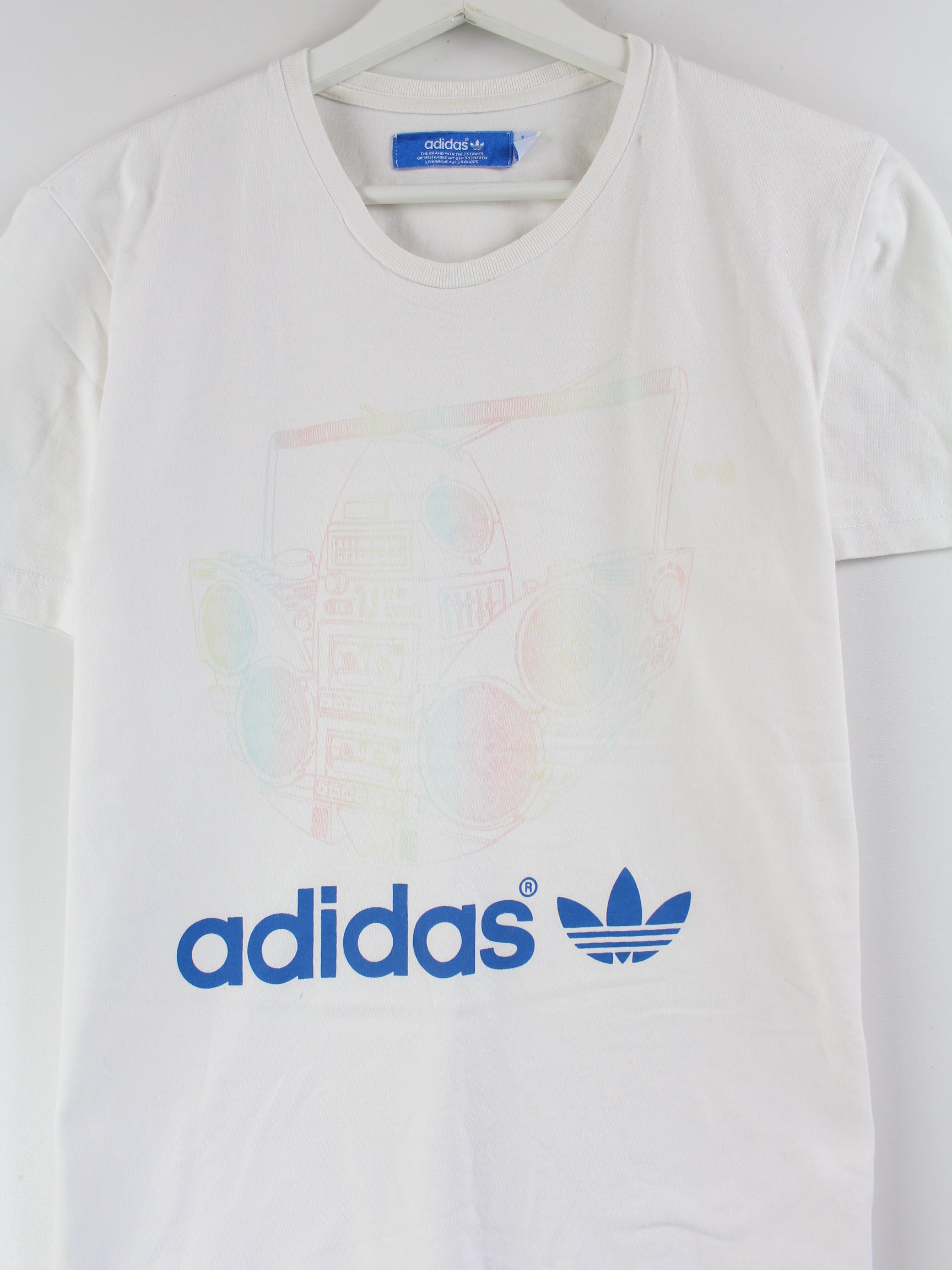 Weißes T-Shirt der Marke Adidas in Größe M. Es ist aus Baumwolle hergestellt und in gutem Zustand im Angebot. Mit chiquem Trefoil Print.