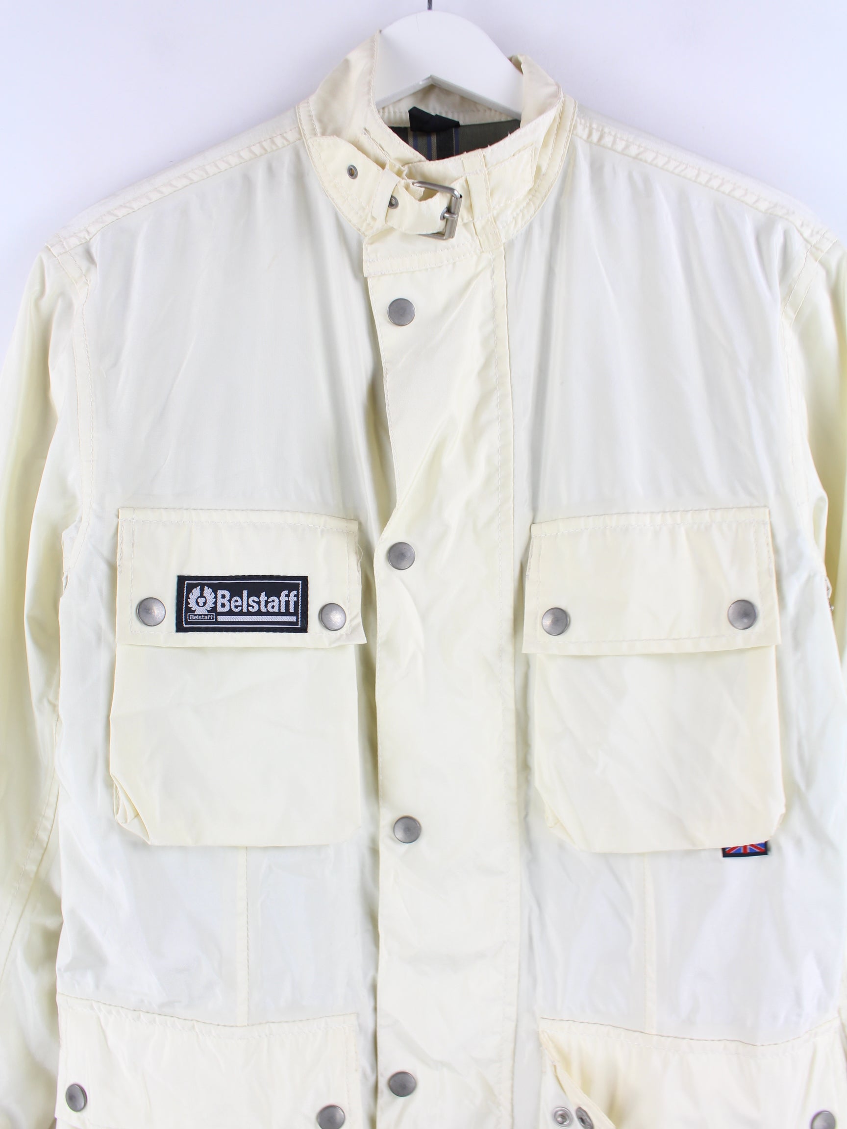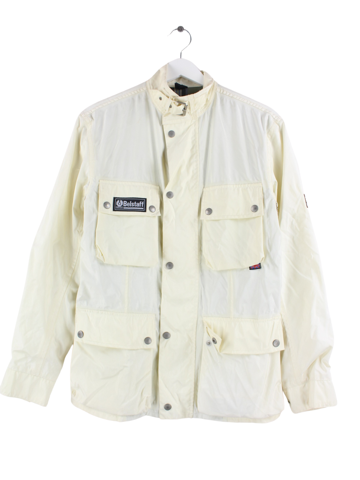 Leichte Jacke vom Label Belstaff in Größe S aus Anfang der 2000'er. Sie ist aus Synthetik und in Beige vorrätig.