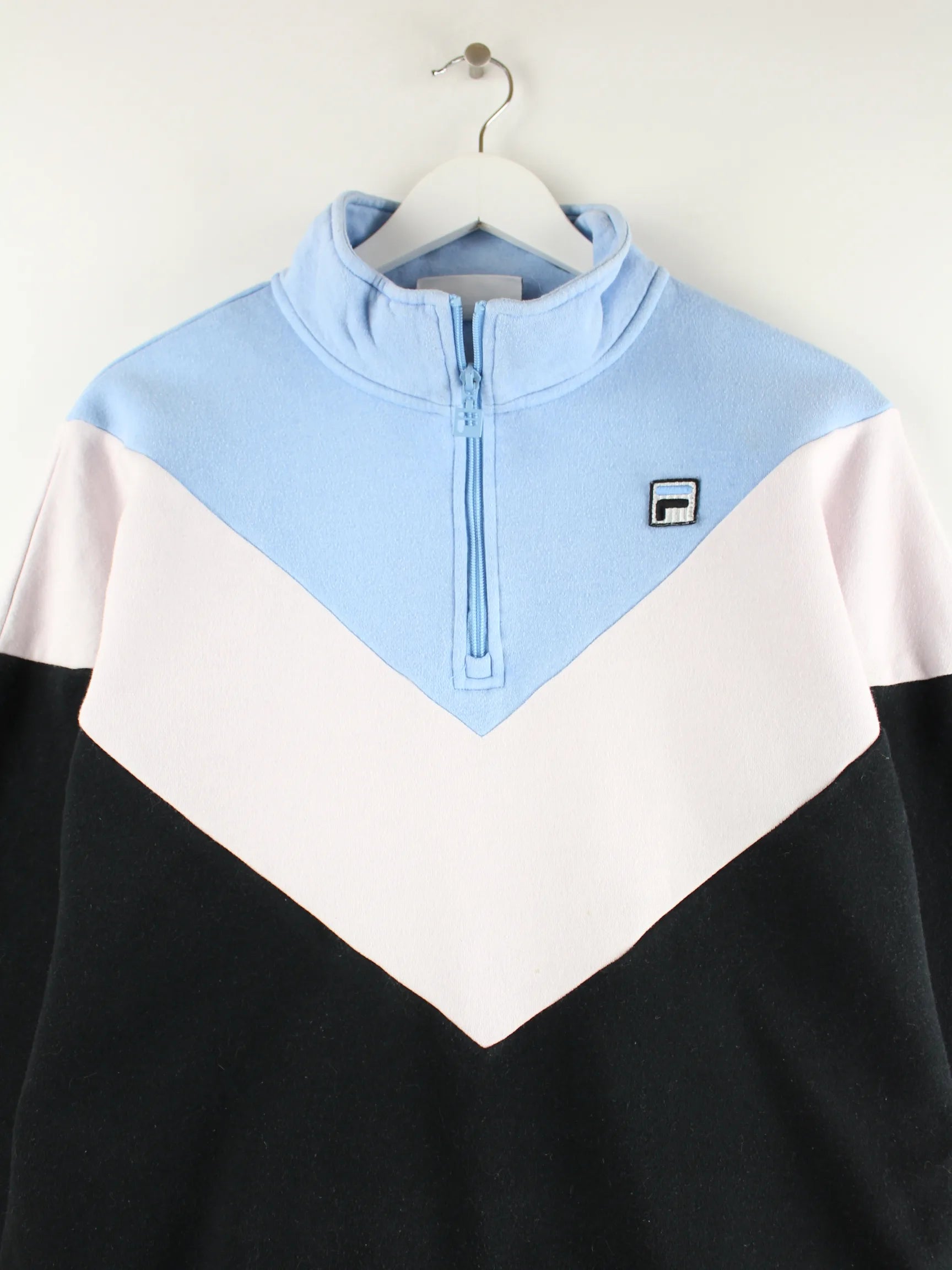 Sweater des Labels Fila mit half Zip in Größe M. Er ist aus einer Baumwollmischung hergestellt und in Blau bei uns zu bekommen.
