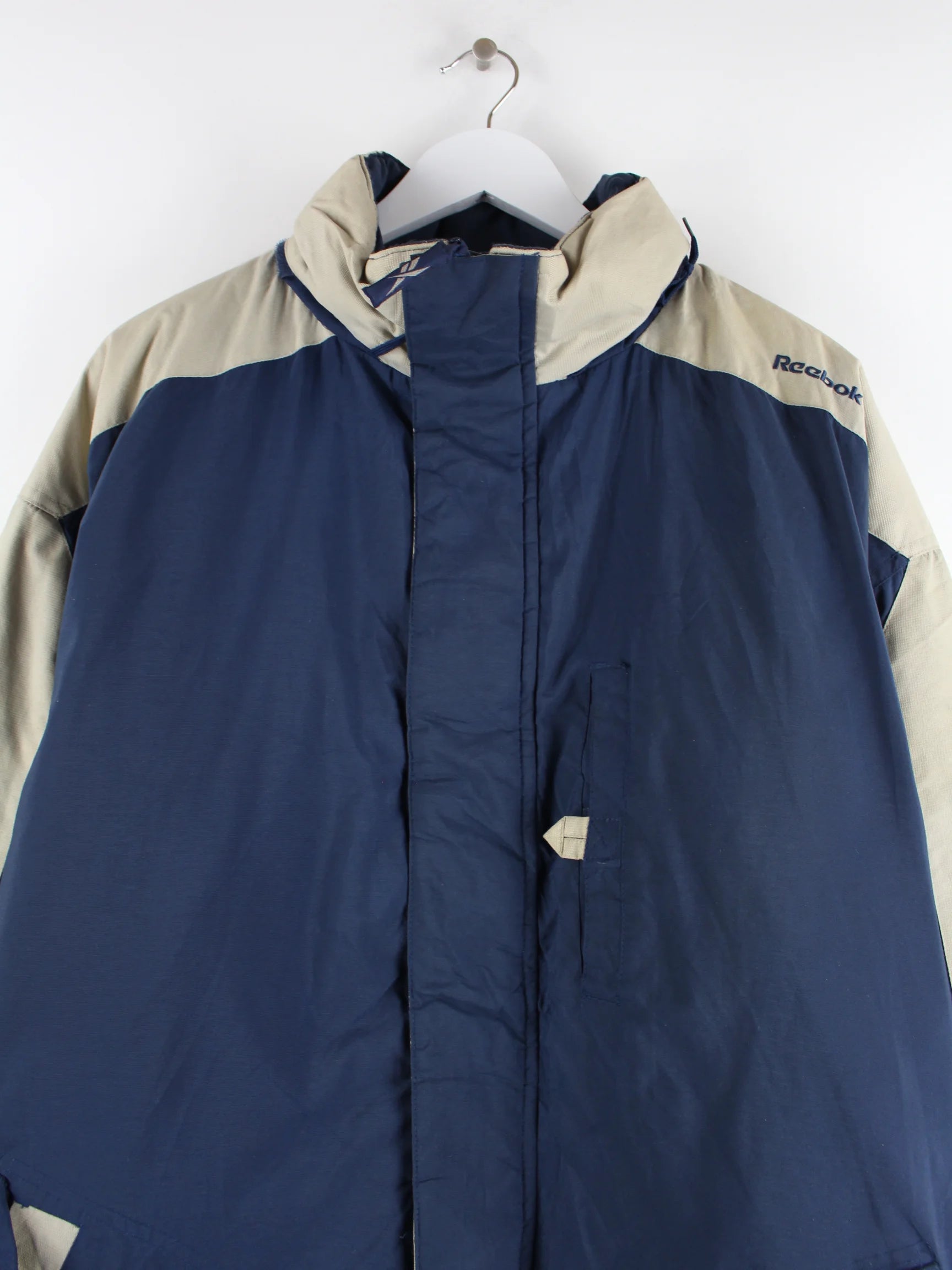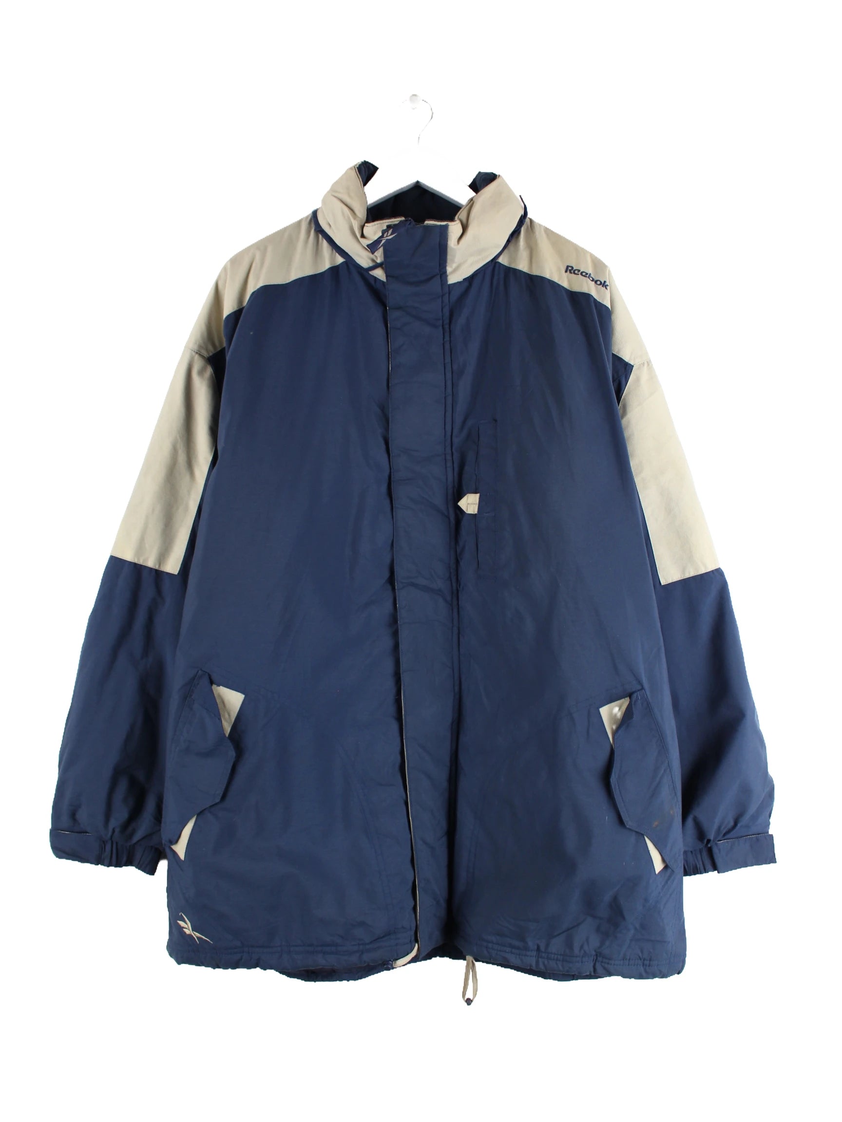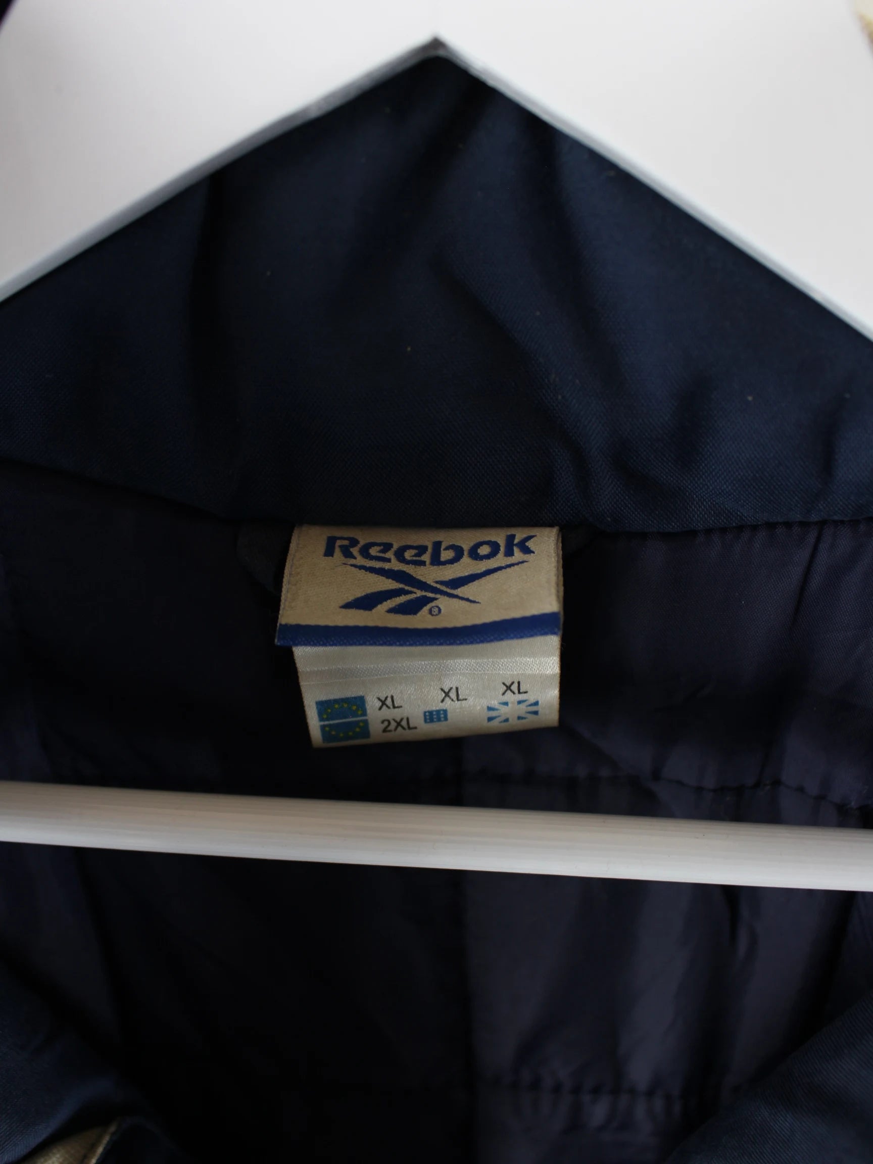 Jacke des Labels Reebok in Größe XL. Sie ist aus Synthetik und in Blau im Bestand.