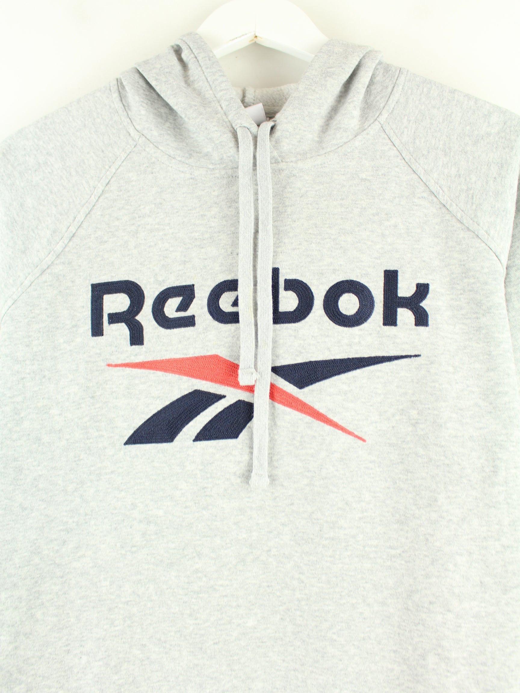 Hoodie der Brand Reebok mit Stick in Größe S aus Anfang der 2000'er. Er ist aus einer Baumwollmischung hergestellt und in Grau auf Lager.