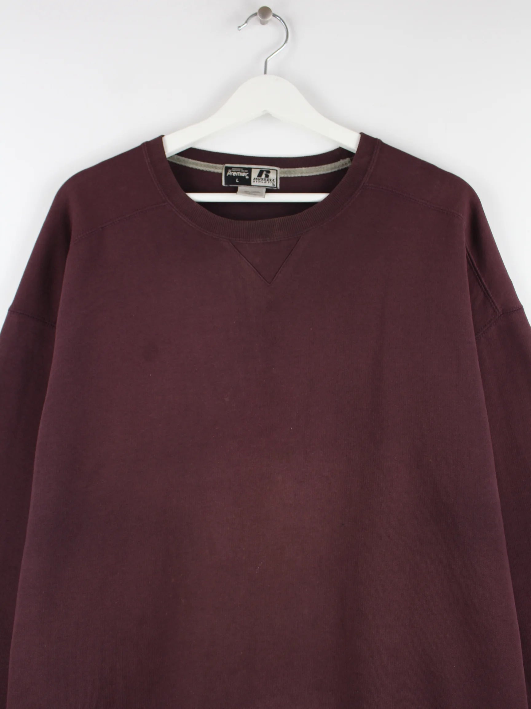 Roter Sweater aus dem Hause Russell Athletic in Größe L. Er ist aus einer Baumwollmischung gemacht und in gutem Zustand bei uns vorrätig.
