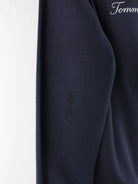 Blauer Sweater des Labels Tommy Hilfiger in Größe L. Er ist aus einer Baumwollmischung produziert. Den Zustand würden wir als 'In Ordnung' bezeichnen (vergl. Bilder).