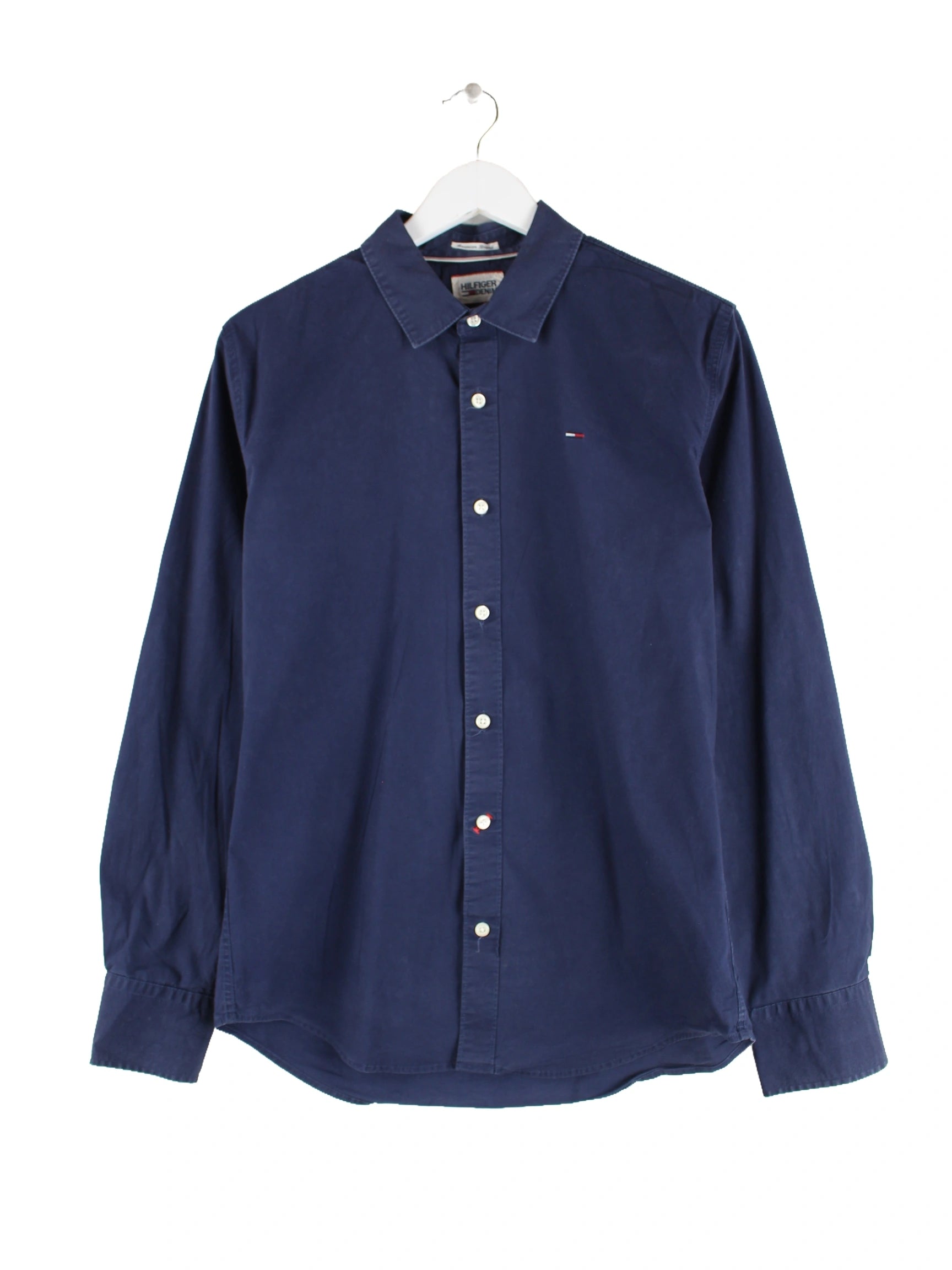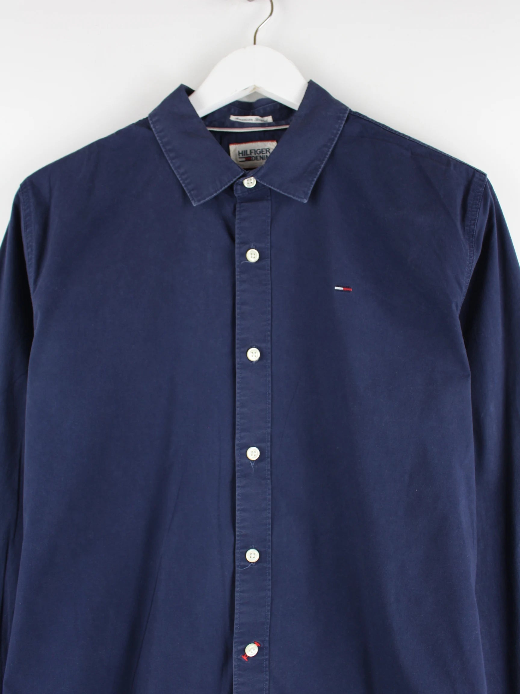 Blaues Hemd der Brand Tommy Hilfiger in Größe L. Es ist aus Baumwolle gemacht. Den Zustand würden wir als 'In Ordnung' bezeichnen (vergl. Bilder).