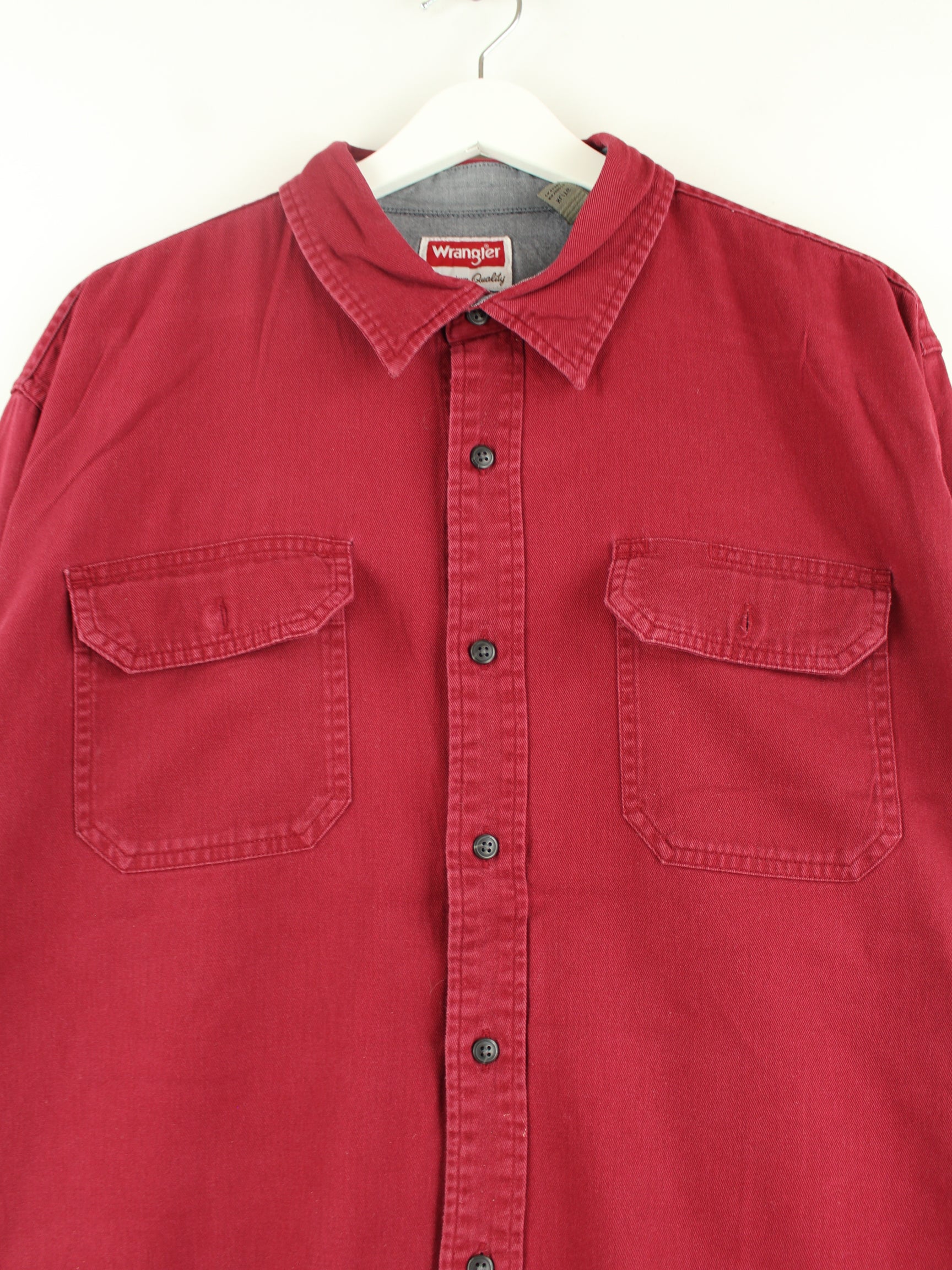 Freizeit Hemd der Marke Wrangler in Größe XL aus Anfang der 2000'er. Es ist aus Baumwolle hergestellt und in Rot im Angebot.