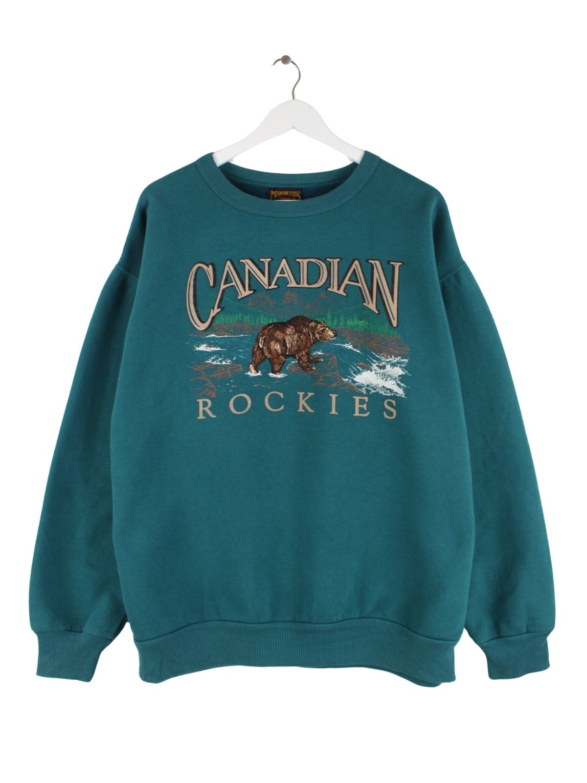 Vintage 90s Canadian Rockies Print Sweater Grün XL