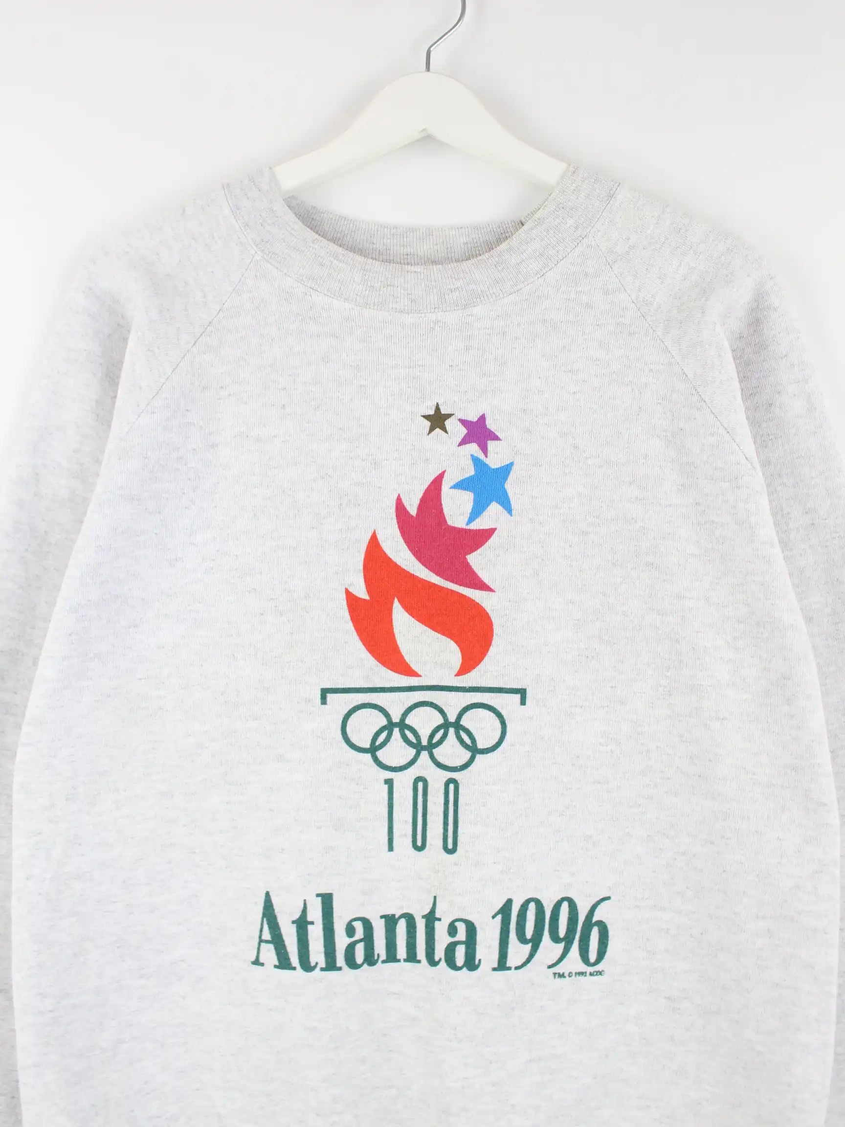 Oneita 1996 Vintage Olympia Atlanta Print Sweater Grau XL
