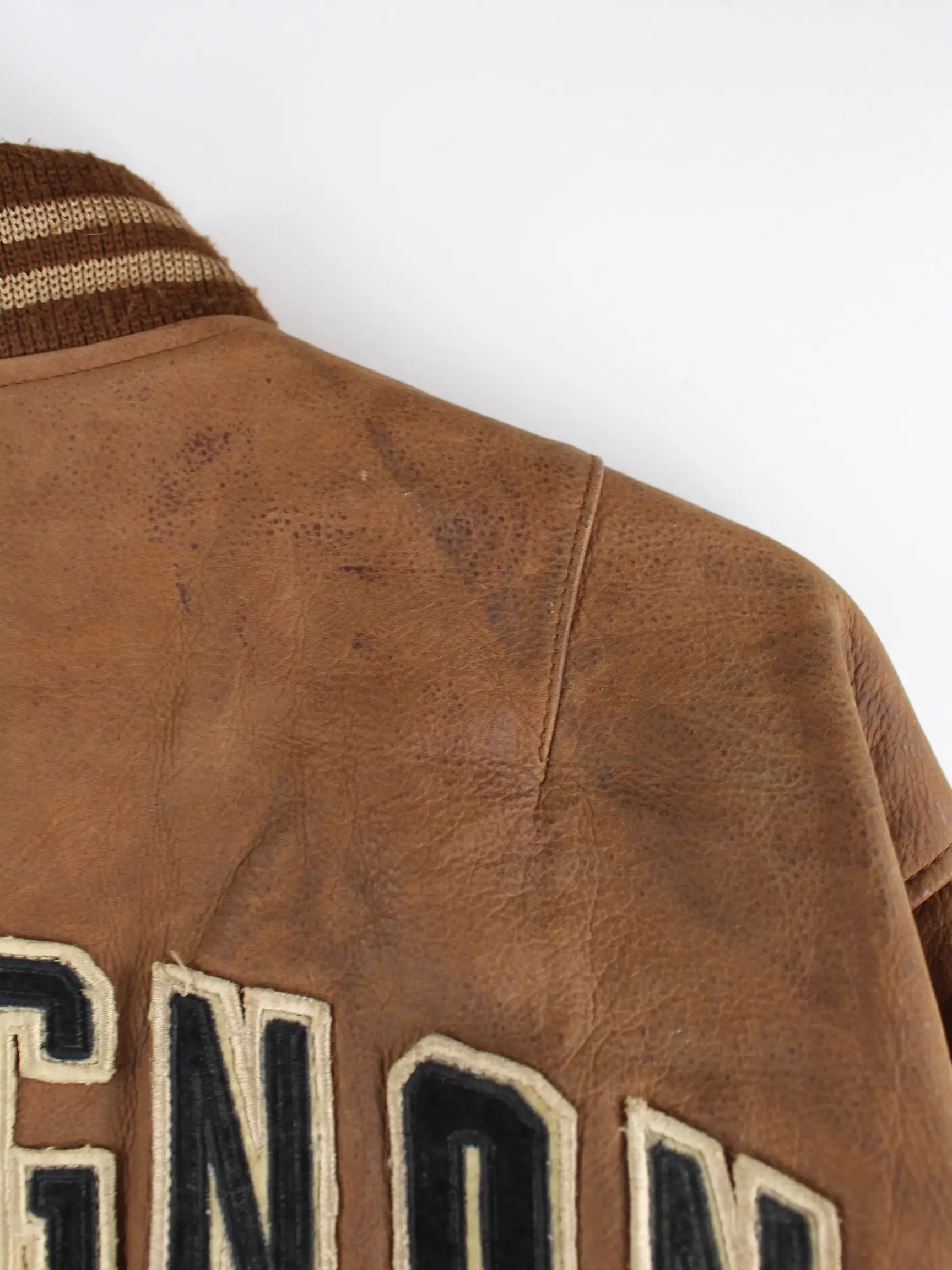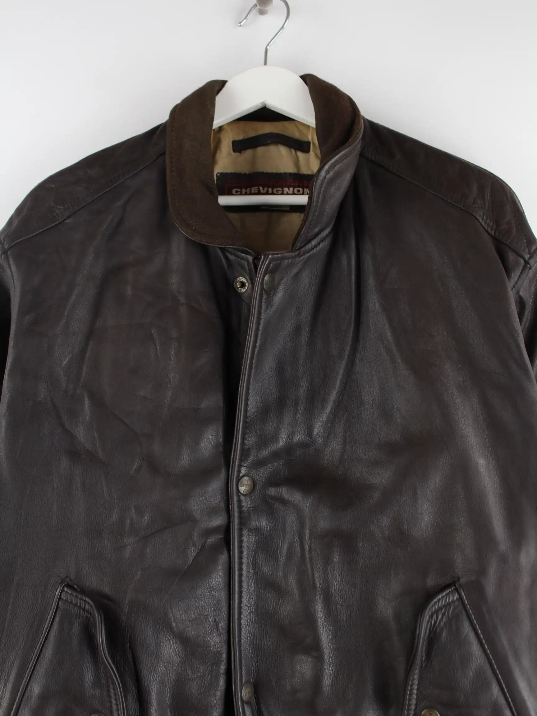 Chevignon 90s Vintage Spellout Leder Jacke Braun M
