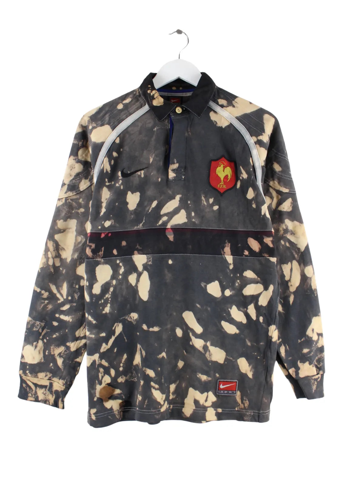 Nike 00s France Rugby Rework Tie Dye Langarm Polo Grau M