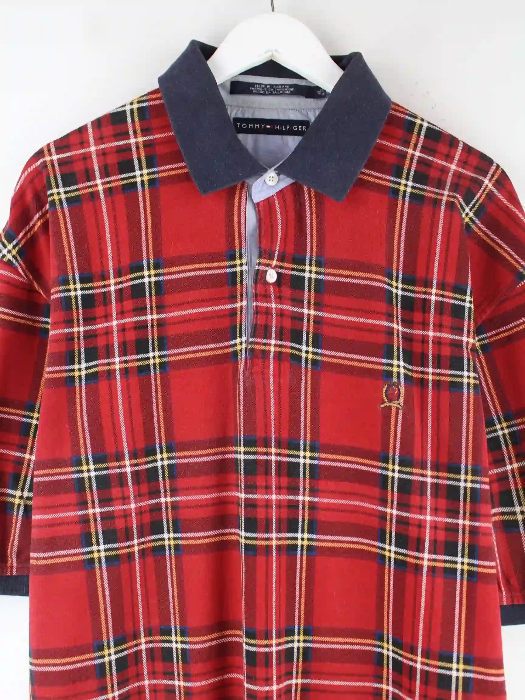 Rotes Poloshirt vom Brand Tommy Hilfiger in Größe XL. Es ist aus Baumwolle hergestellt und in gutem Zustand in Stock.