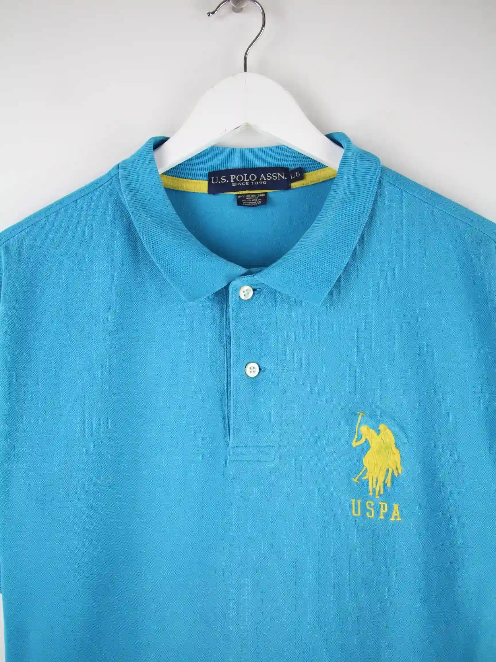 Blaues Poloshirt vom Brand U.S. Polo ASSN. in Größe L. Es ist aus Baumwolle hergestellt und in gutem Zustand bei uns zu bekommen.