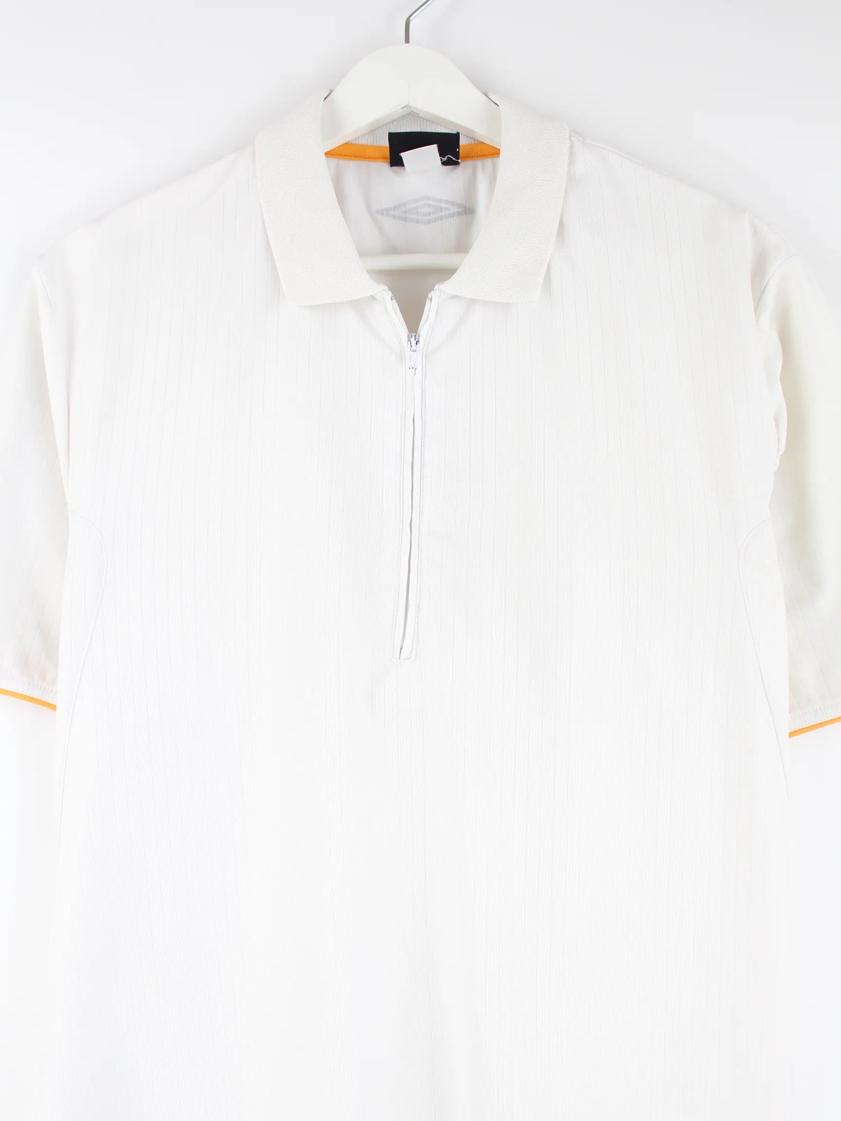 Poloshirt von Umbro mit half Zip in Größe XXL. Es ist aus Synthetik angefertigt und in Weiß zu bekommen.