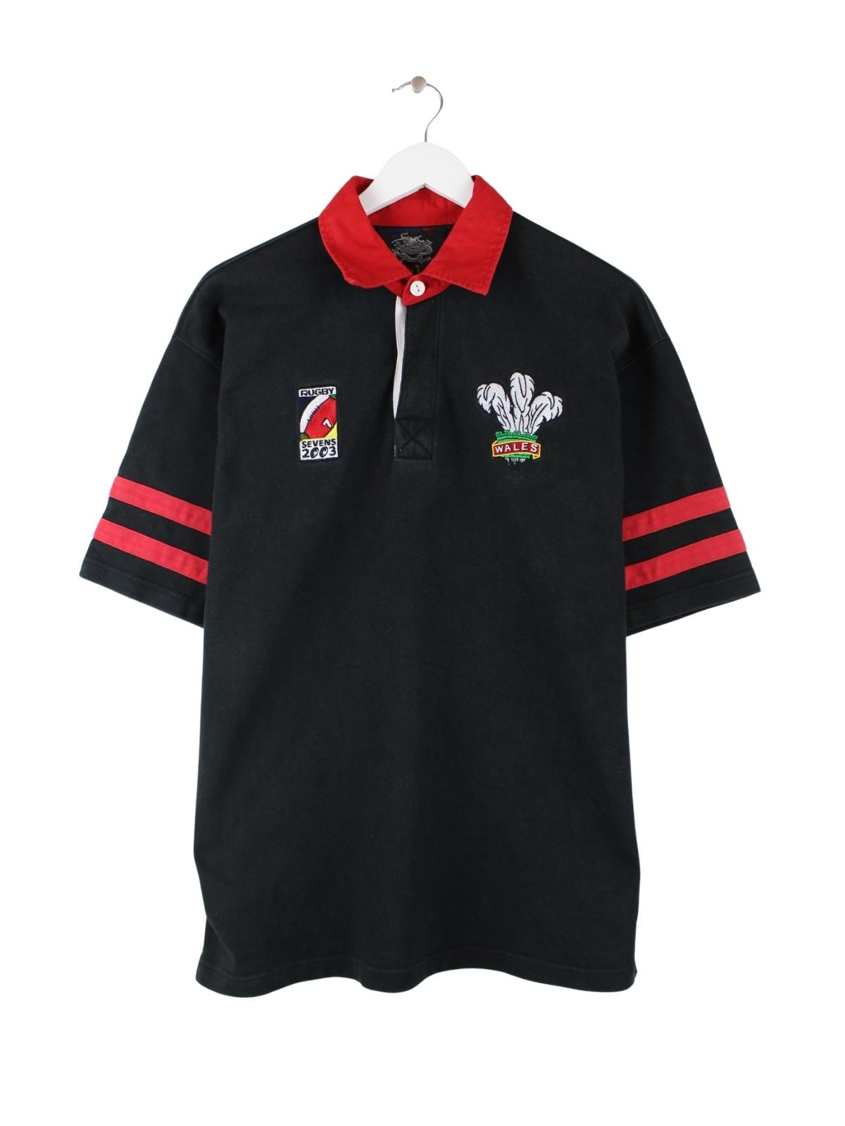 Vintage 2003 Wales Rugby Sevens Polo Schwarz S