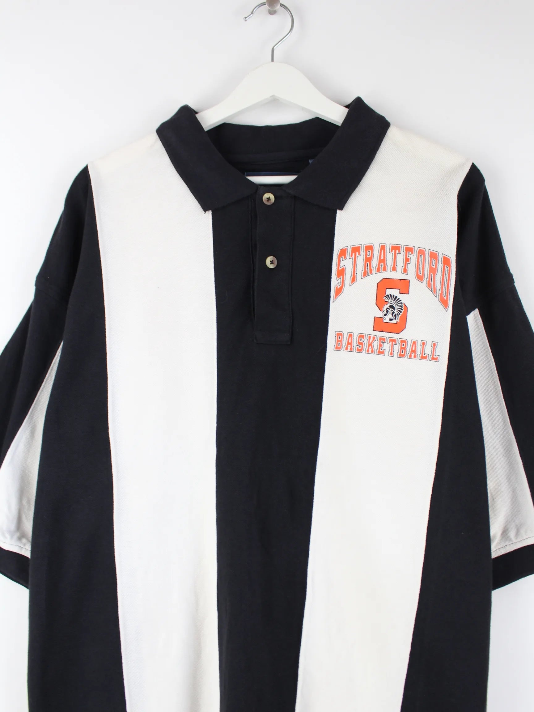 Vintage 00s Striped Stratford Basketball Polo Schwarz / Weiß XL