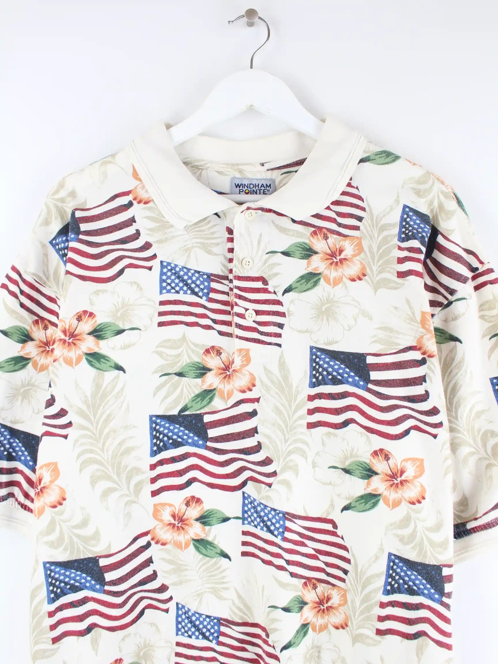 Vintage 90s USA Flowers Pattern Polo Beige XXL