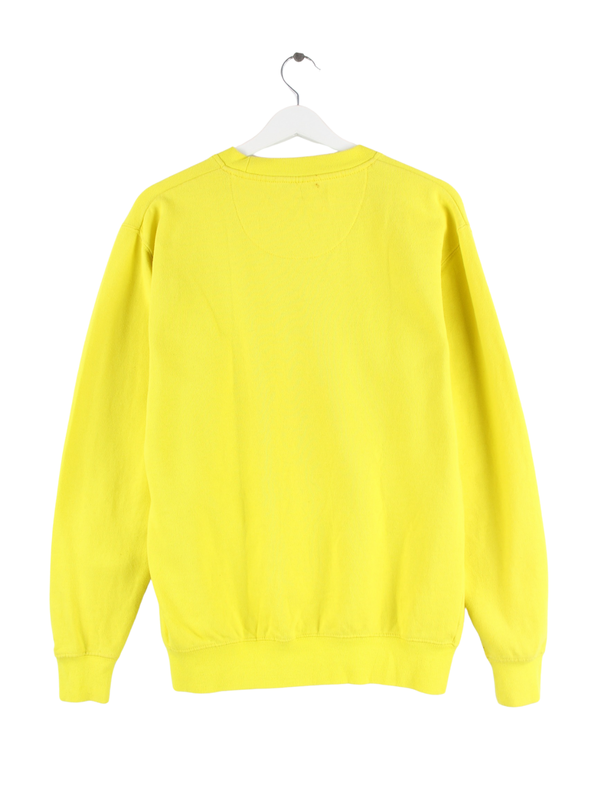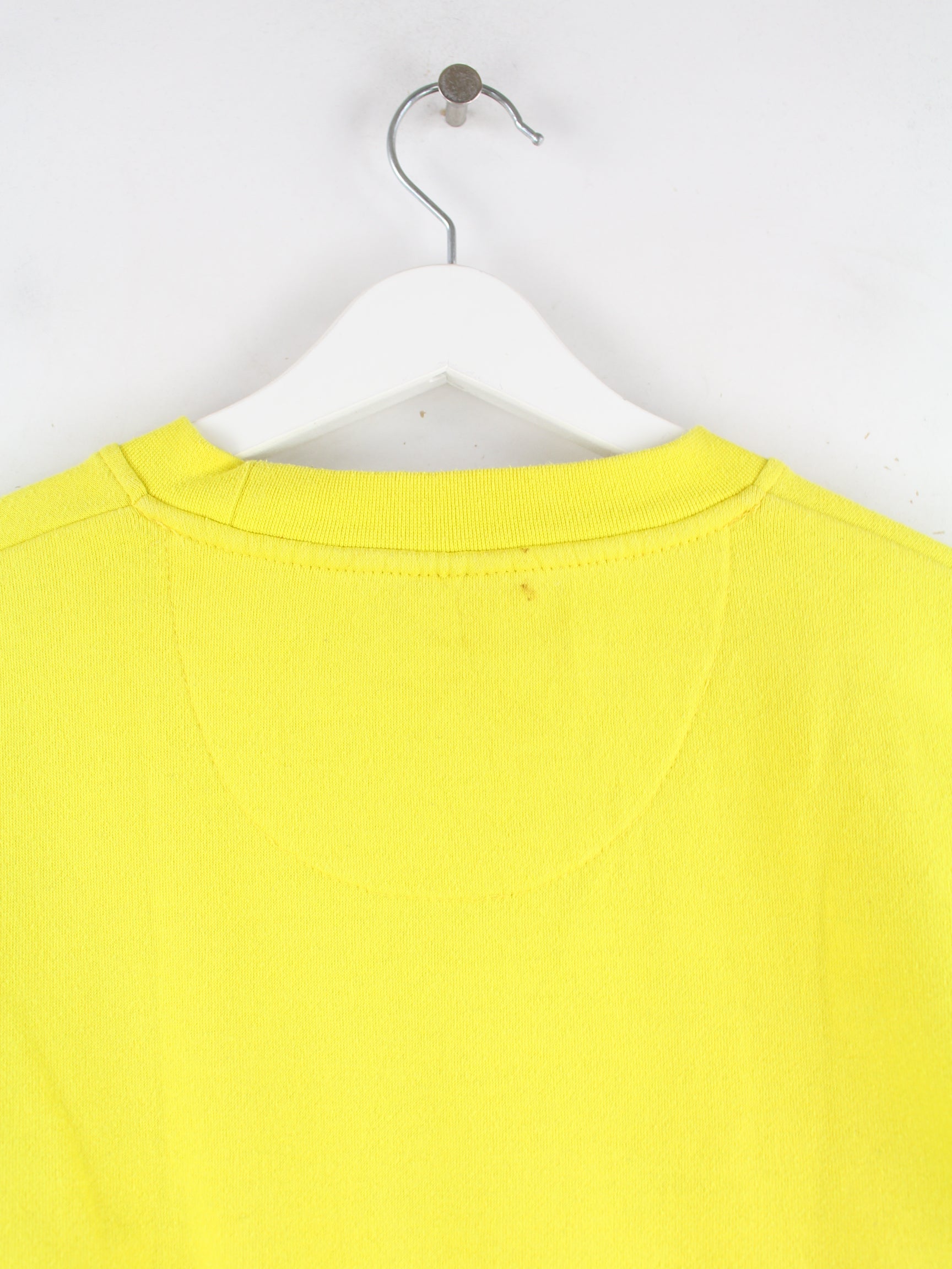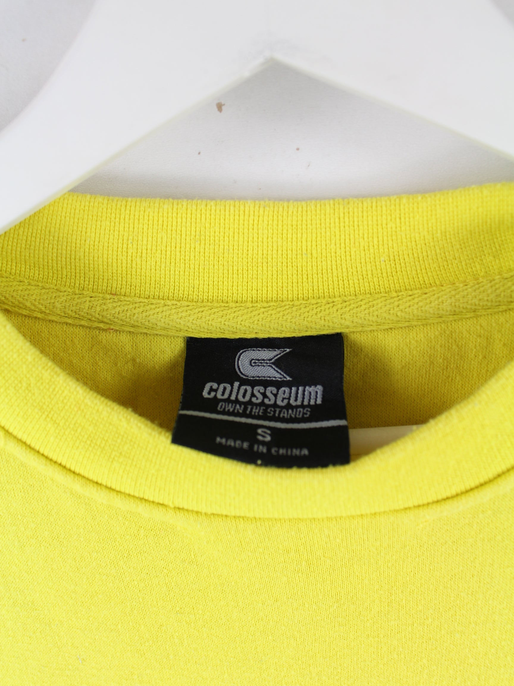 Gelber Sweater mit gesticktem Logo der Marke Colosseum Athletics in Größe S. Er ist aus einer Baumwollmischung angefertigt und in gutem Zustand zu haben.