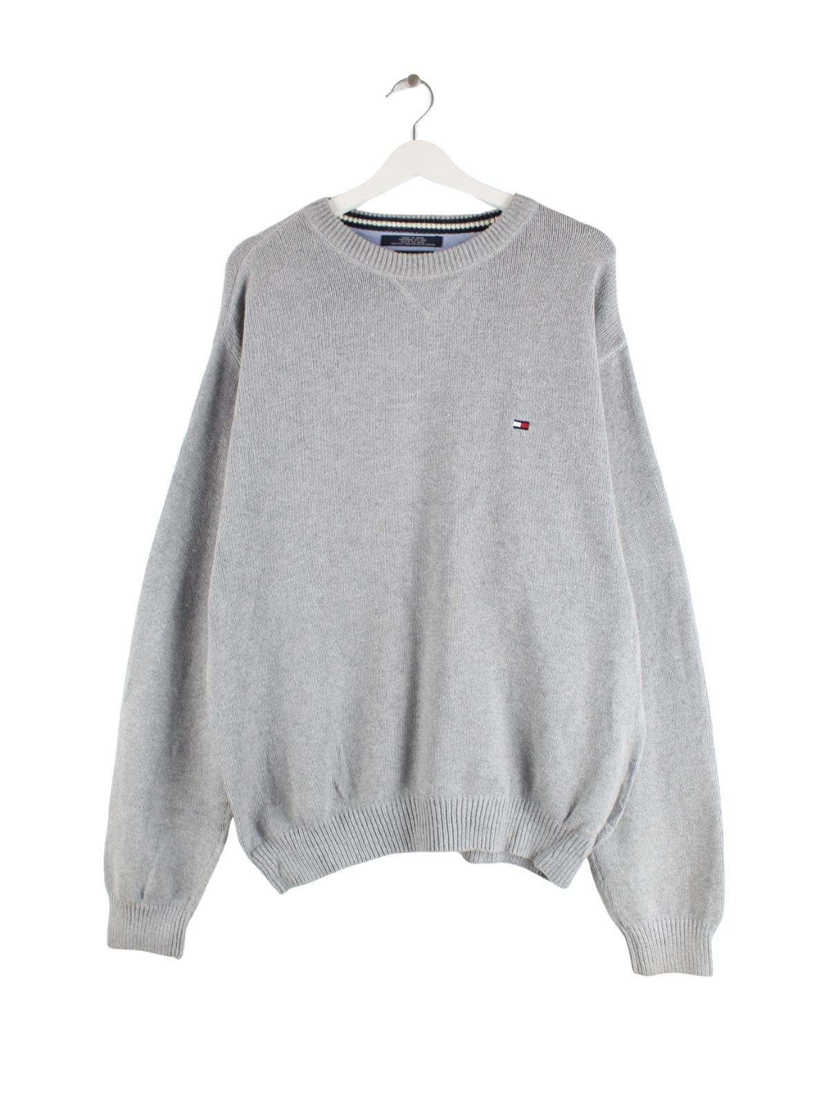 Grauer Pullover des Labels Tommy Hilfiger in Größe XL. Er ist aus Baumwolle angefertigt und in sehr gutem Zustand im Angebot.
