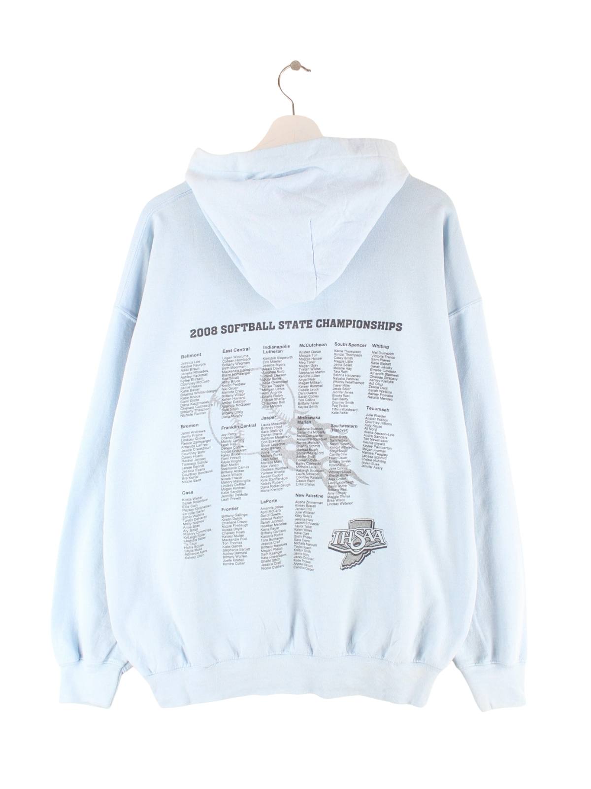 Hoodie der Marke Gildan in Größe XXL. Er ist aus einer Baumwollmischung und in Blau im Angebot. Mit schönem Bear Print.
