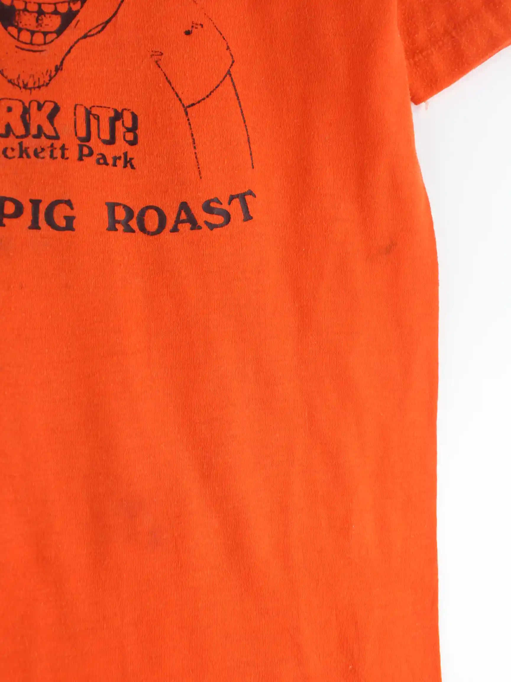 Vintage 1980 Pork It Print Single Stitch T-Shirt Orange S