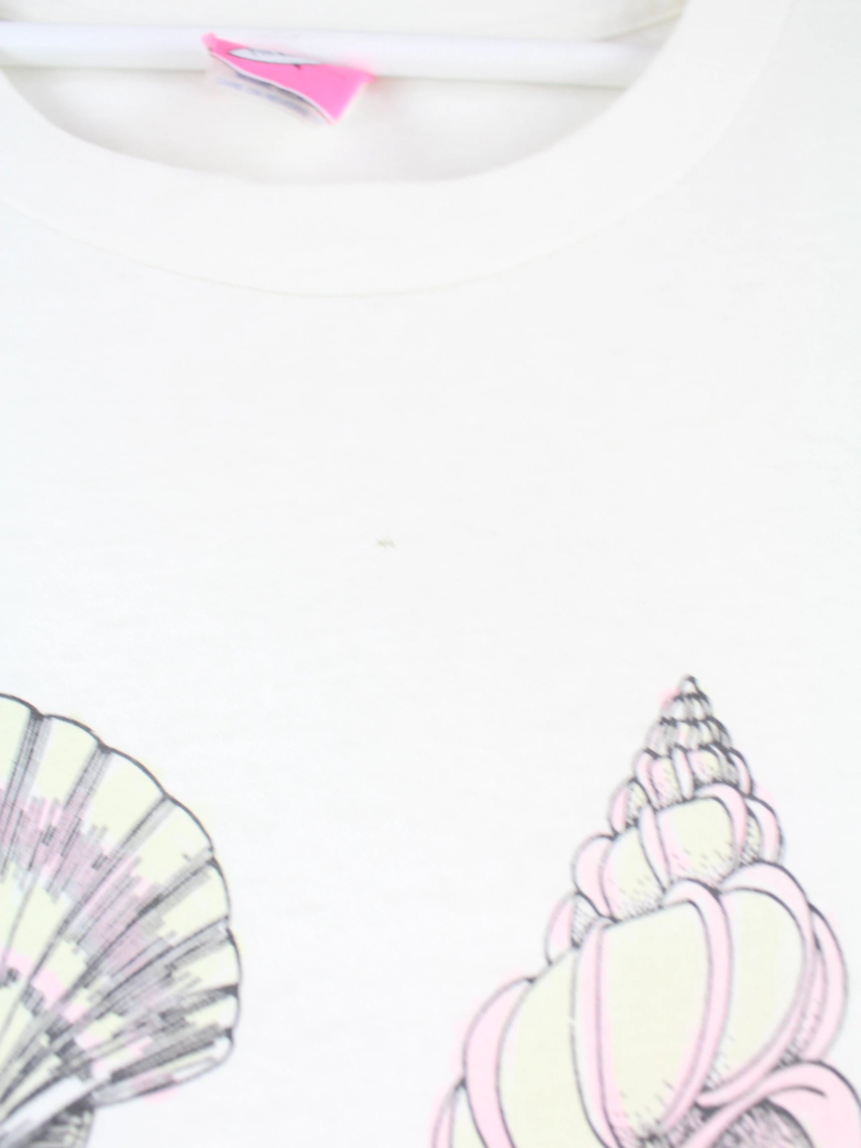 Vintage 90s Seashell Print Single Stitch T-Shirt Weiß XL