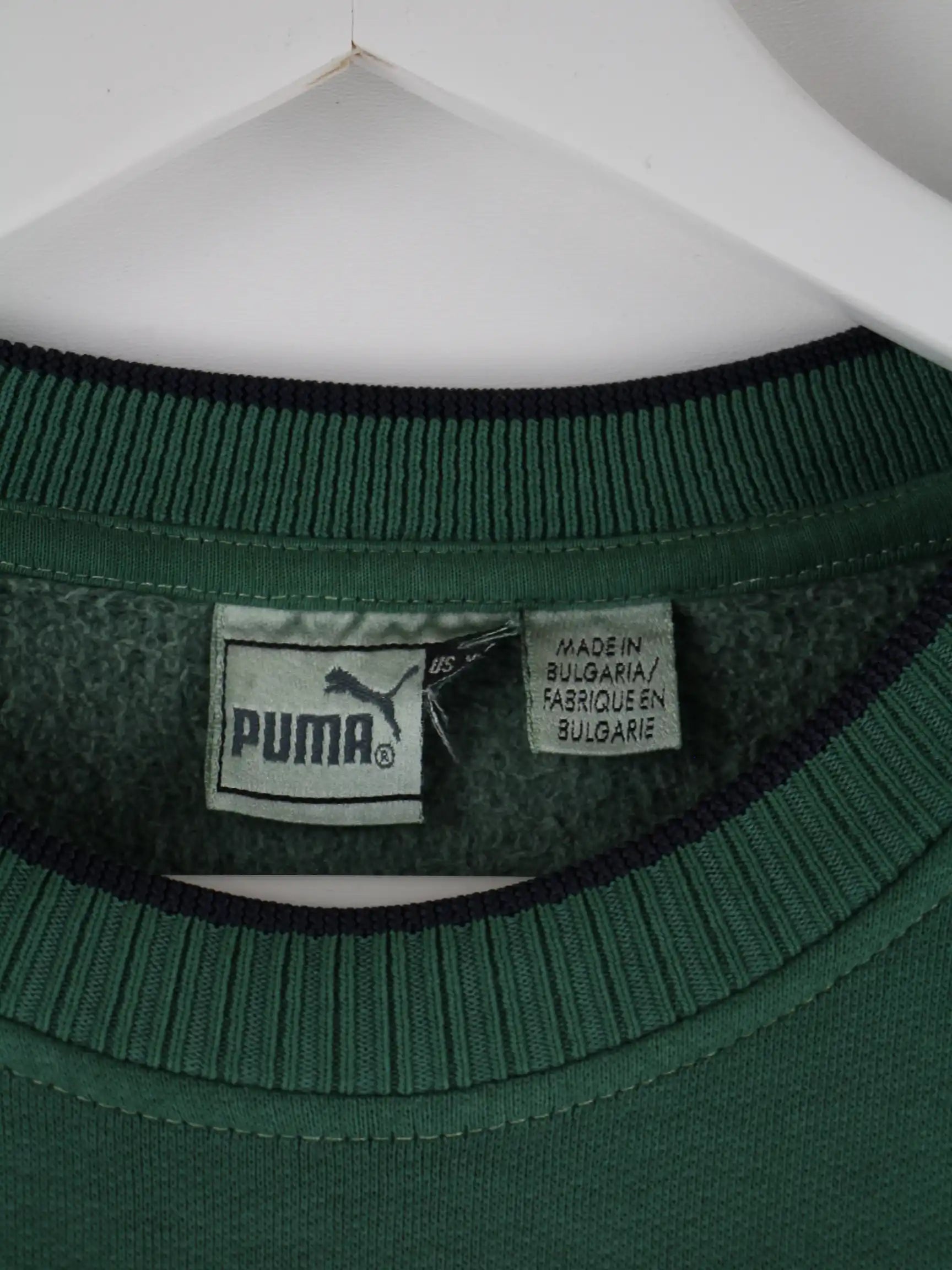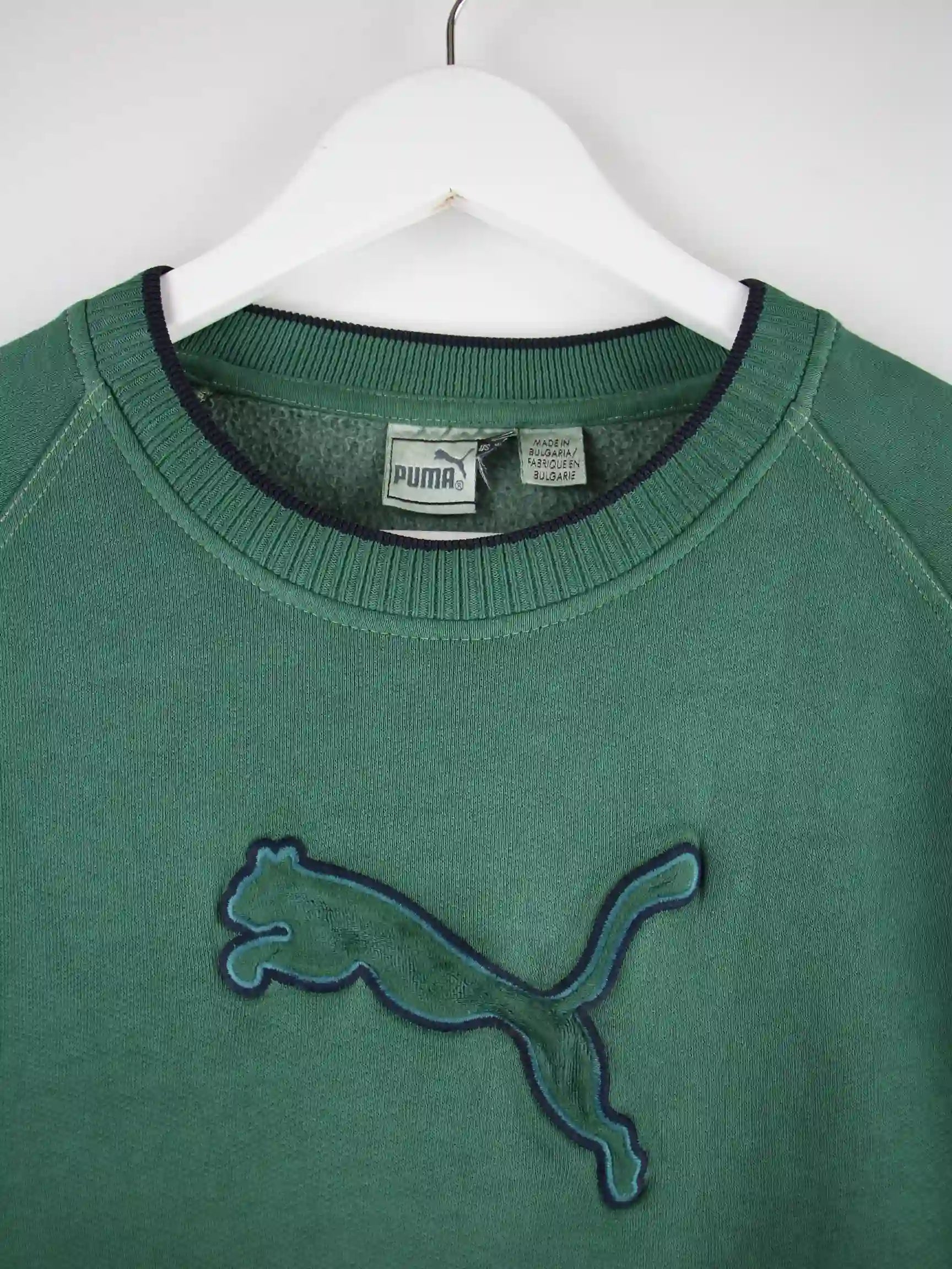 Grüner Sweater vom Label Puma in Größe S. Er ist aus einer Baumwollmischung hergestellt. Den Zustand würden wir als 'In Ordnung' bezeichnen (vergl. Bilder).