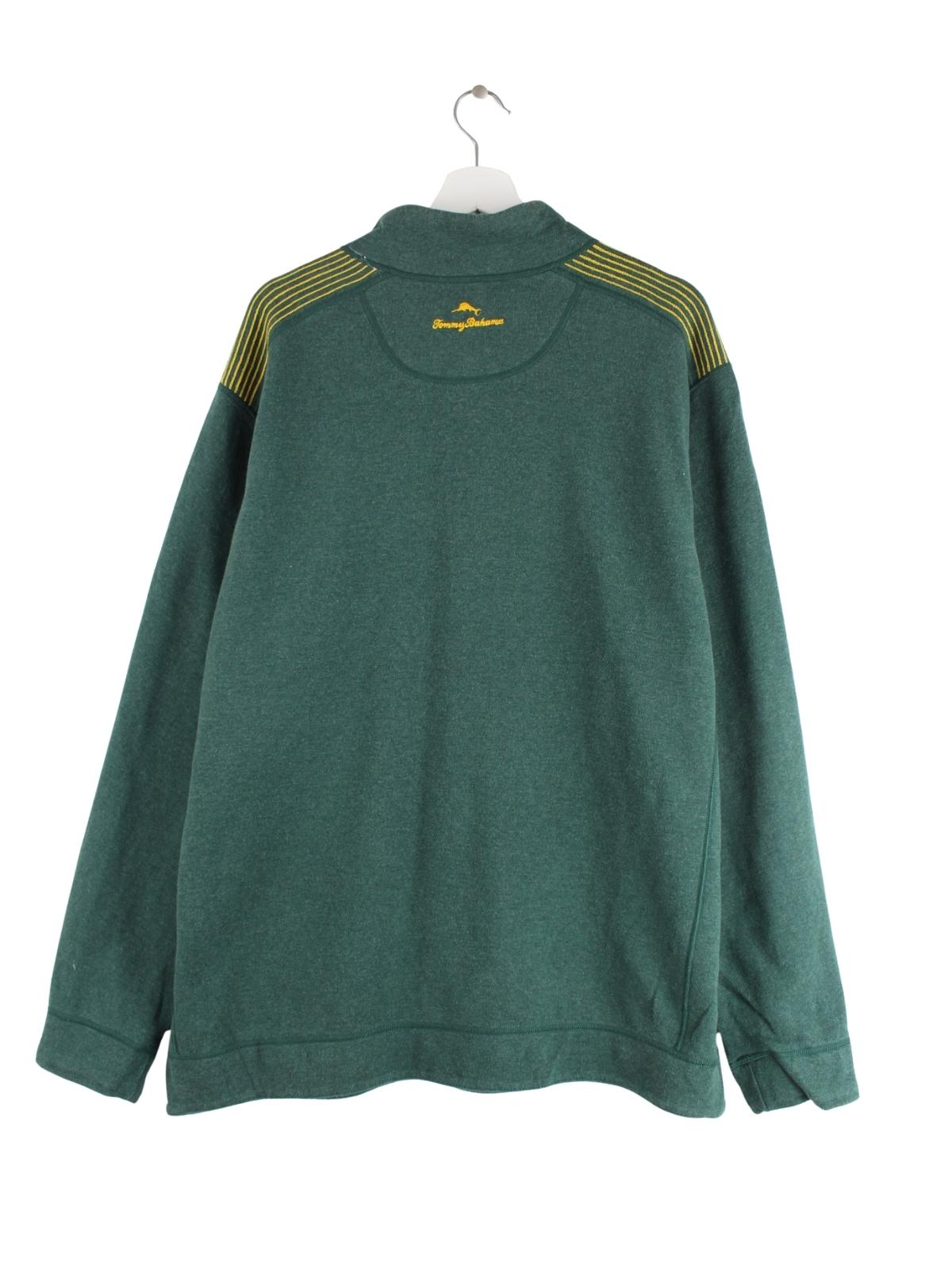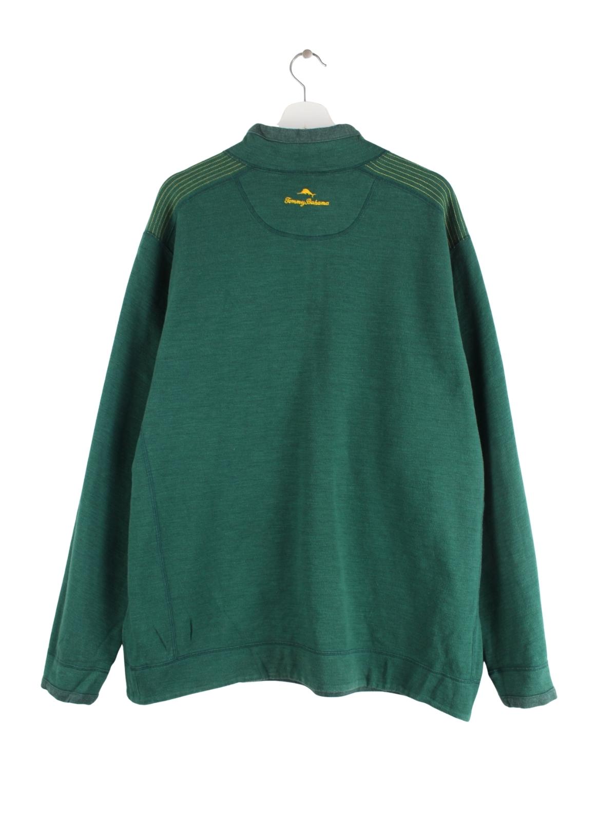 Grüner Sweater mit halbem Reißverschluß vom Label Tommy Bahama in Größe 3XL. Er ist aus einer Baumwollmischung gefertigt und in sehr gutem Zustand zu bekommen.