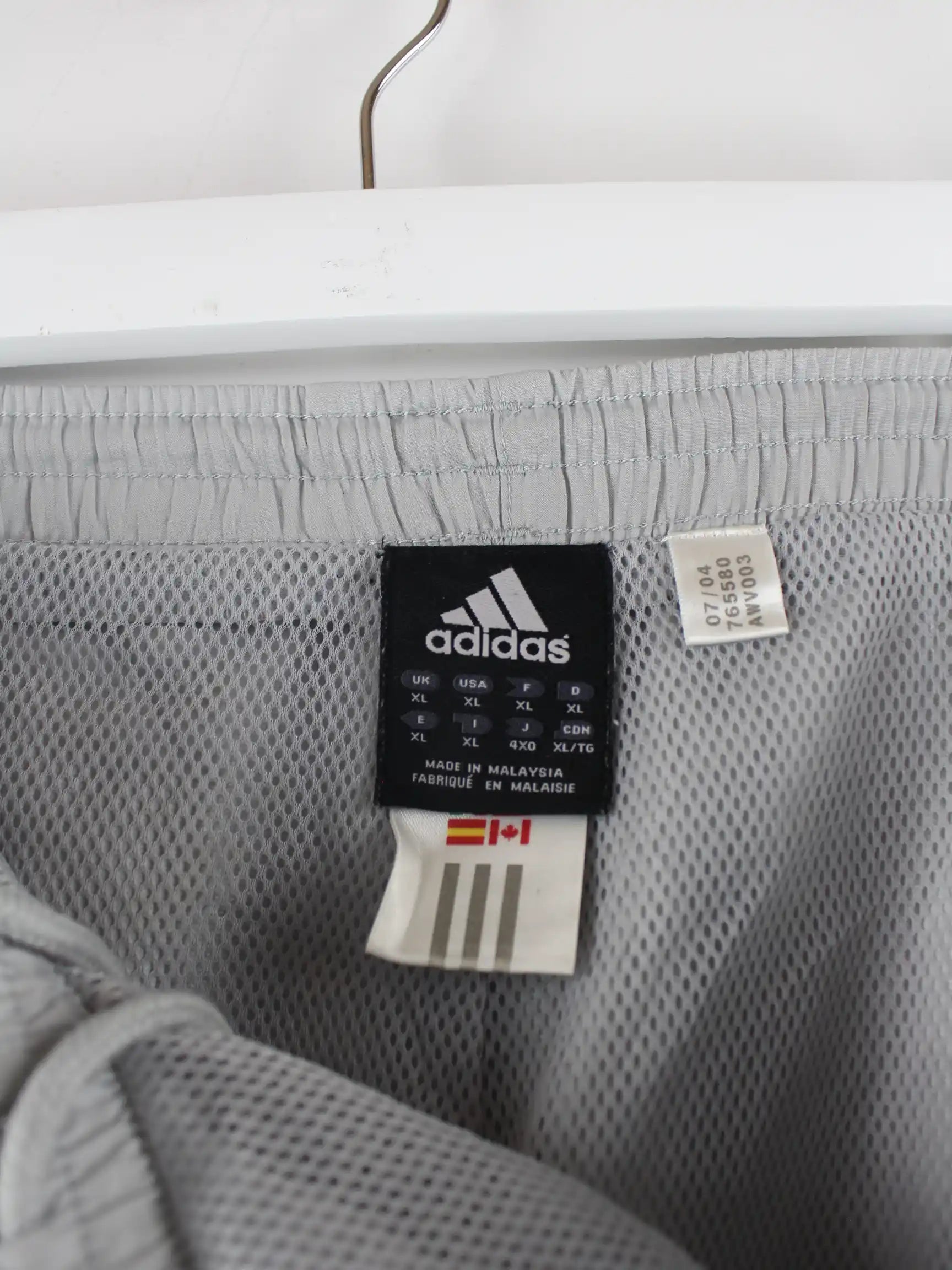 Graue Track Pants des Labels Adidas in Größe XL. Sie sind aus Synthetik produziert. Den Zustand würden wir als 'In Ordnung' bezeichnen (vergl. Bilder).