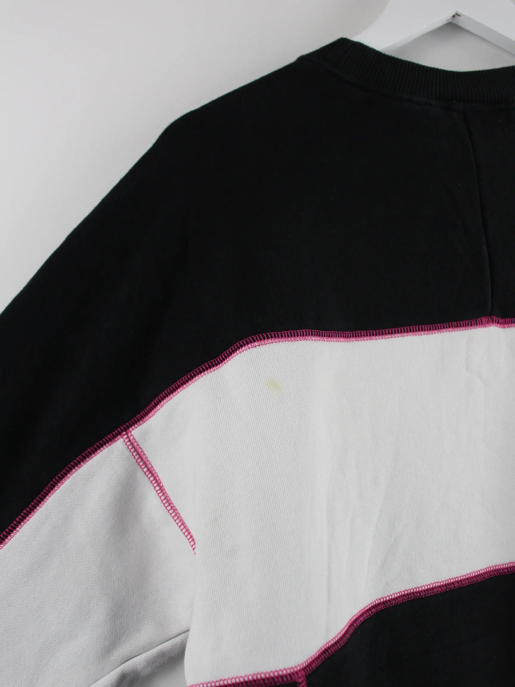 Schwarzer Sweater der Marke Adidas in Größe S. Er ist aus einer Baumwollmischung gemacht und in gutem Zustand bei uns zu bekommen. Mit schickem undefined Print.