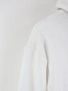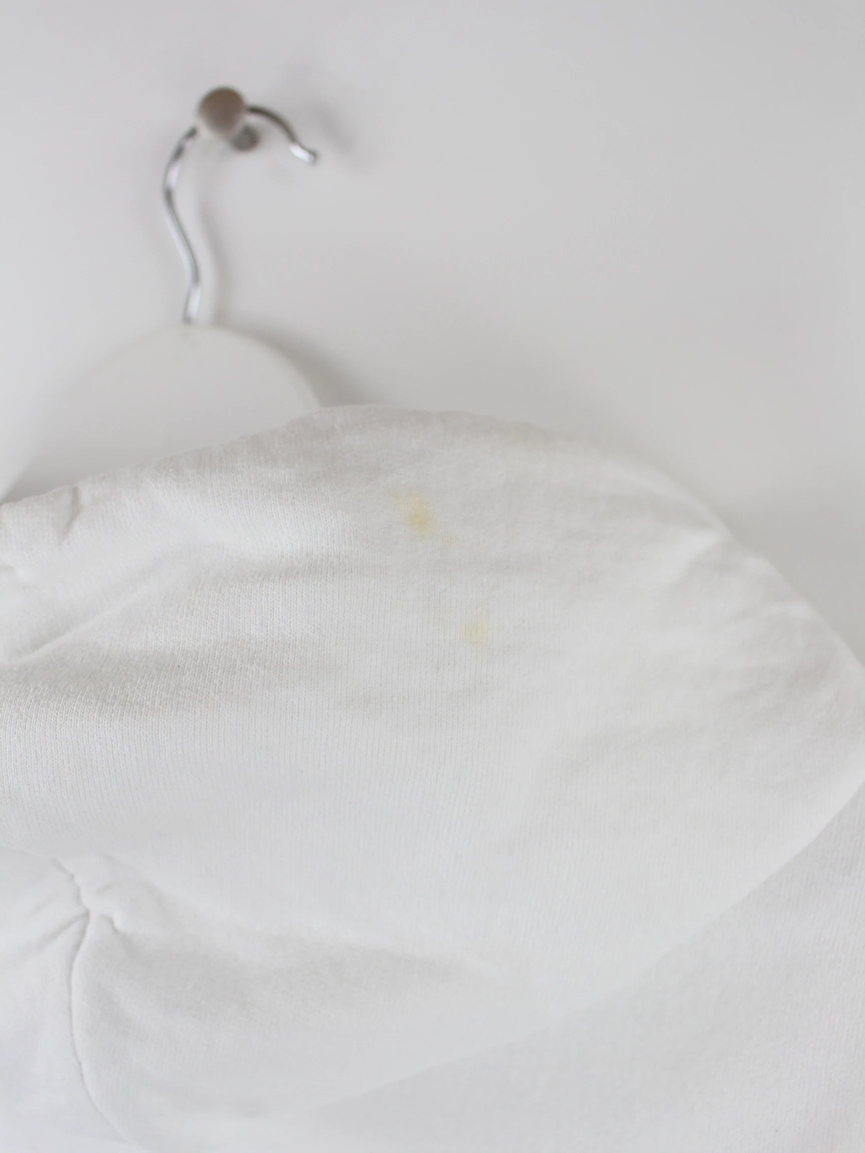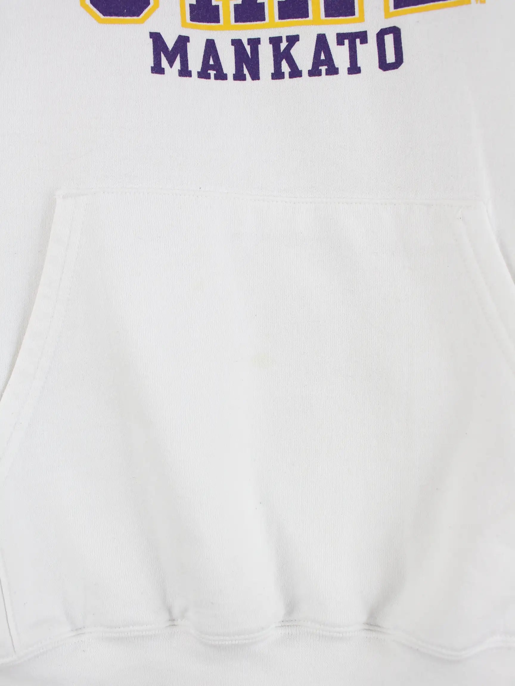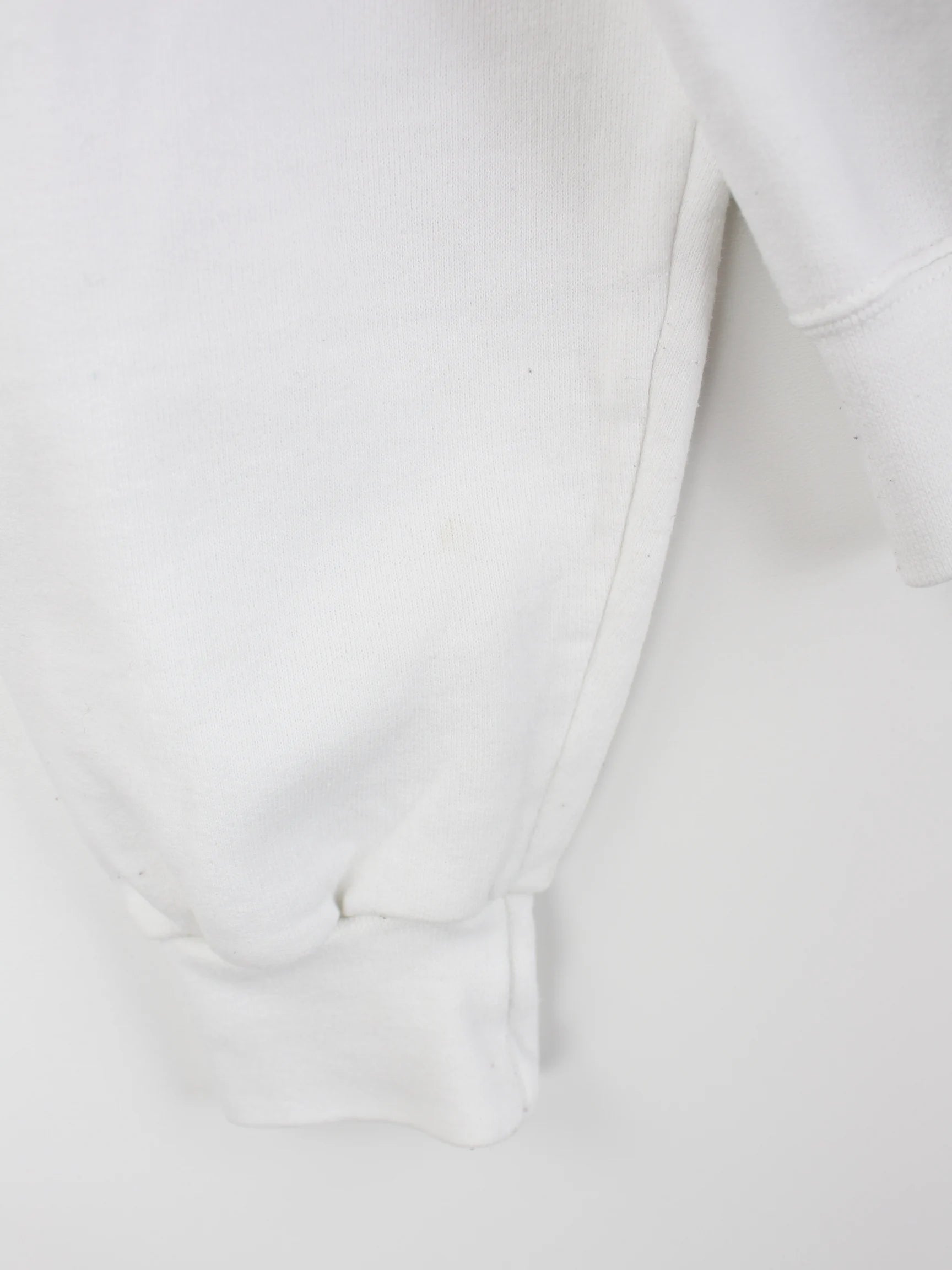 Weißer Hoodie von Champion in Größe S. Er ist aus einer Baumwollmischung hergestellt. Den Zustand würden wir als 'In Ordnung' bezeichnen (vergl. Bilder).Mit tollem State Print.
