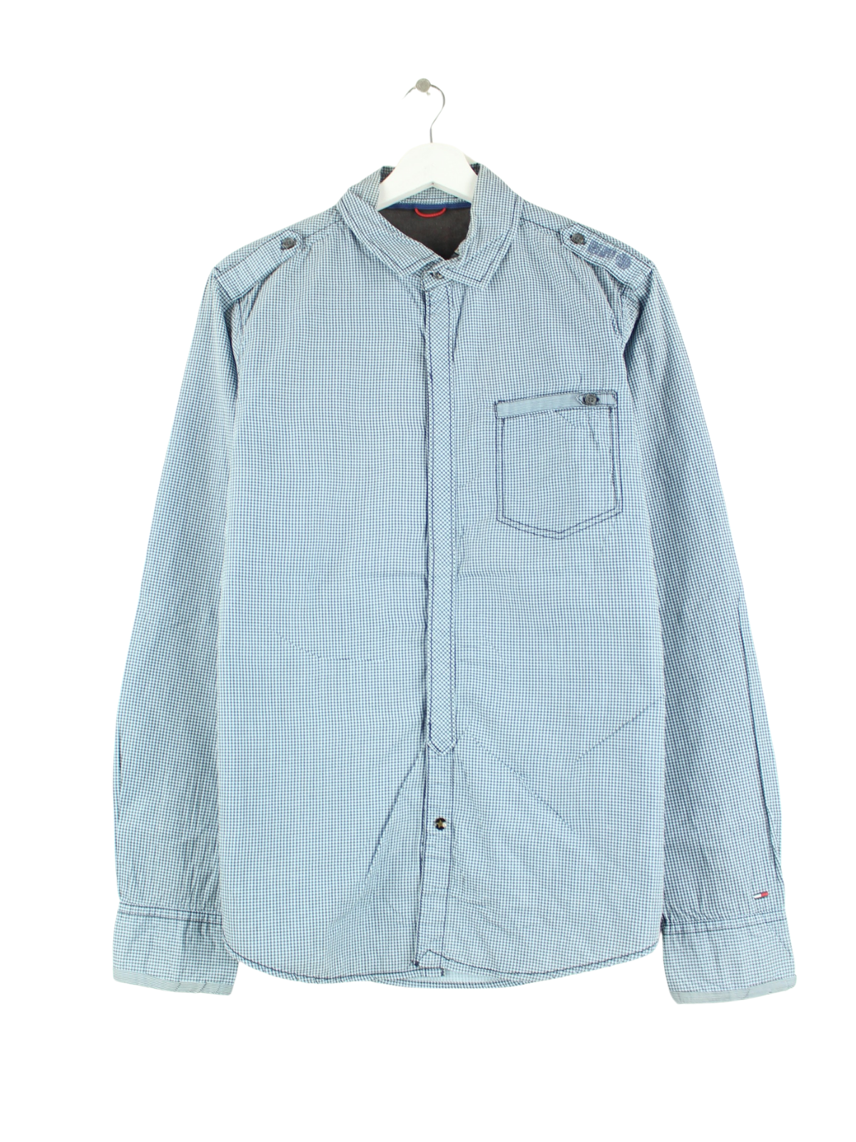Blaues Freizeit Hemd des Labels Tommy Hilfiger in Größe M. Es ist aus Baumwolle gefertigt und in sehr gutem Zustand auf Lager.