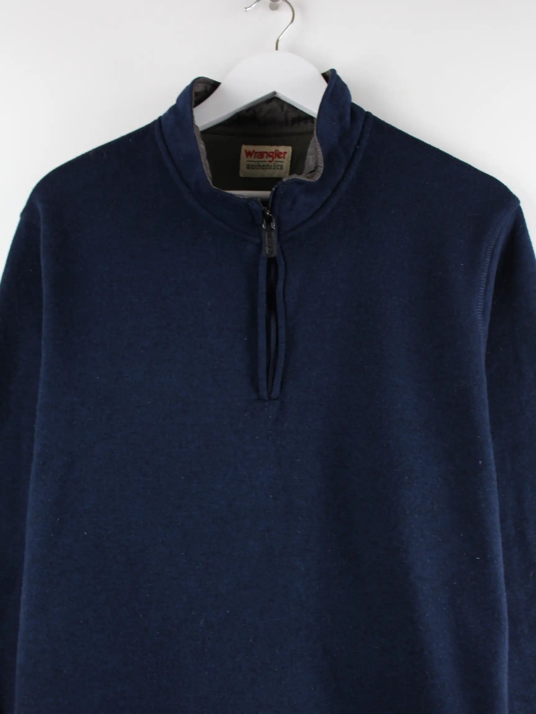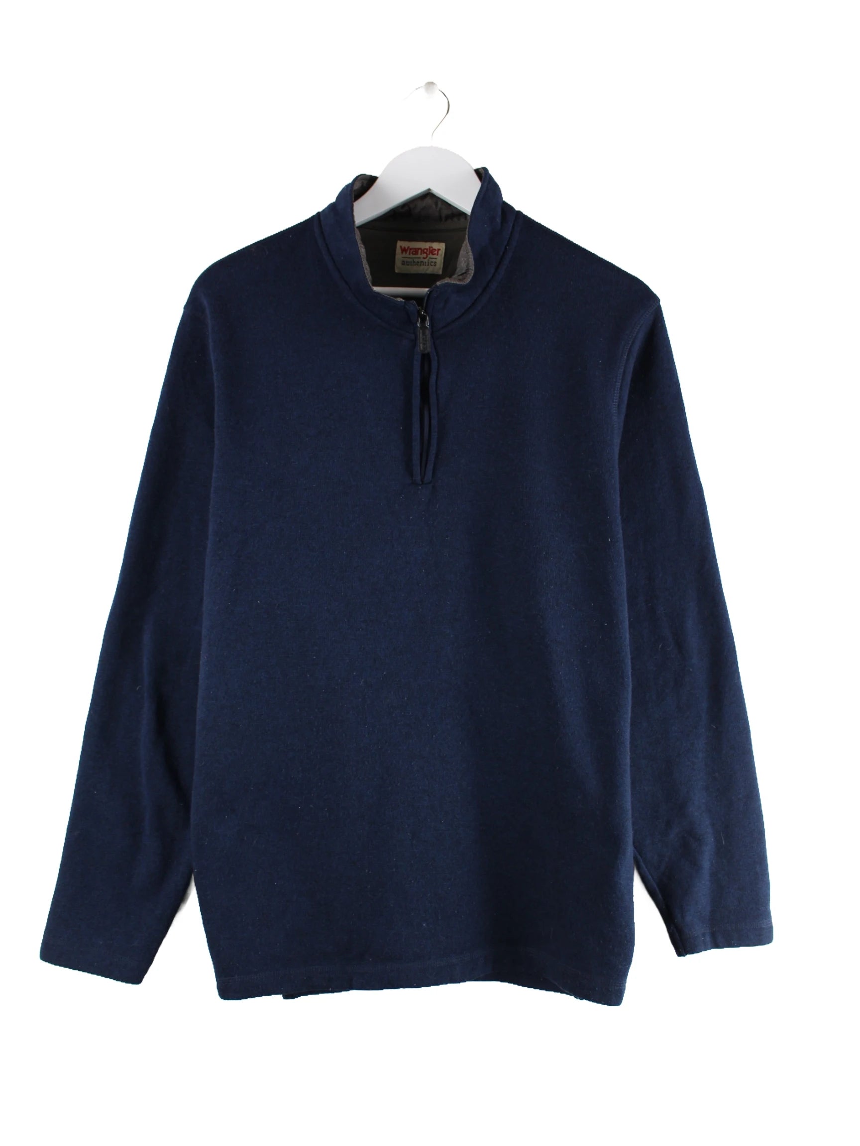 Sweater vom Brand Wrangler mit kurzem Reißverschluß in Größe L. Er ist aus Synthetik gemacht und in Blau zu bekommen.