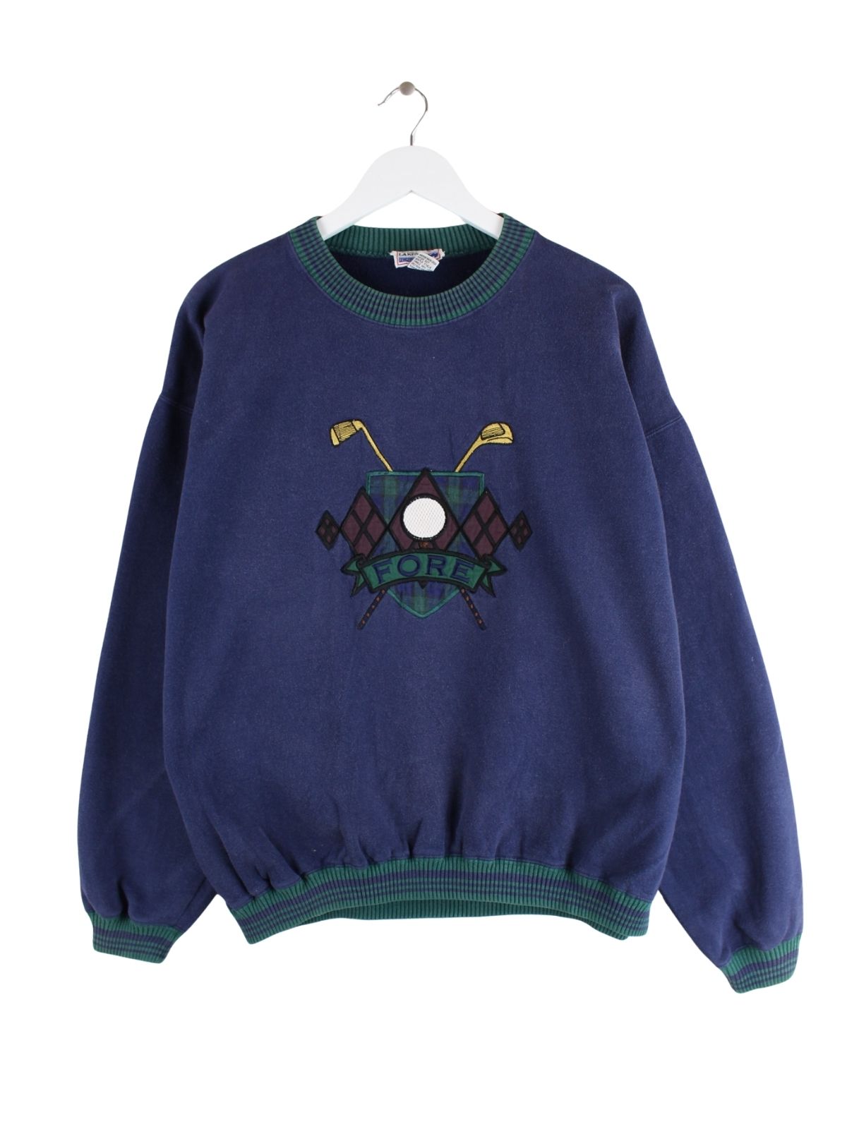 Vintage 90s Golf Championship Embroidered Sweater Blau XL