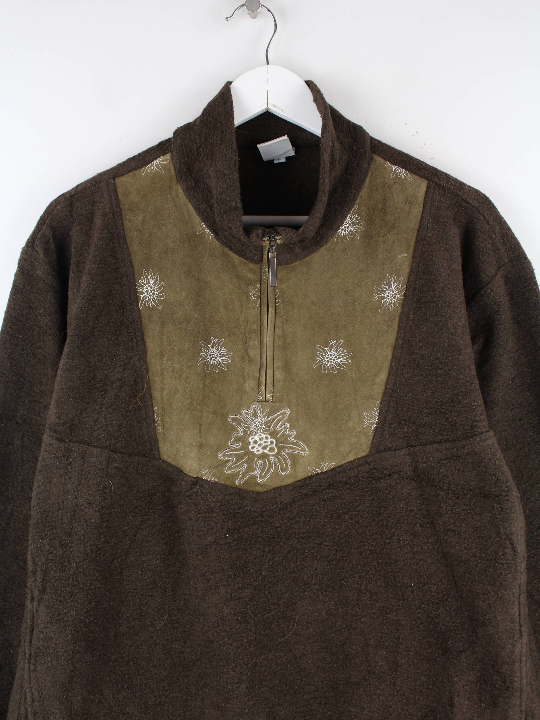 Vintage 90s Half Zip Strick Pullover Braun 3XL