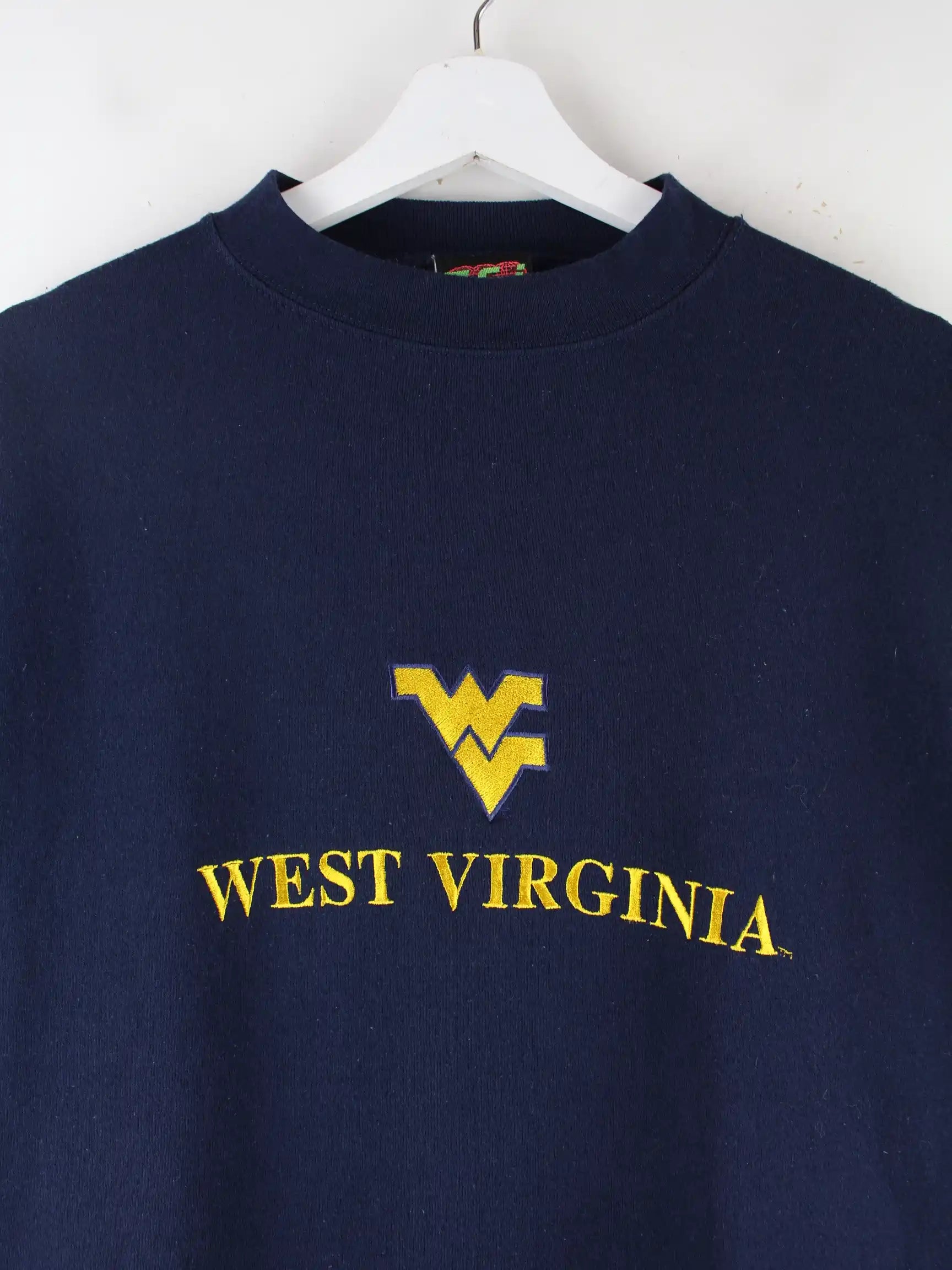Vintage 90s West Virginia Embroidered Sweater Blau XL