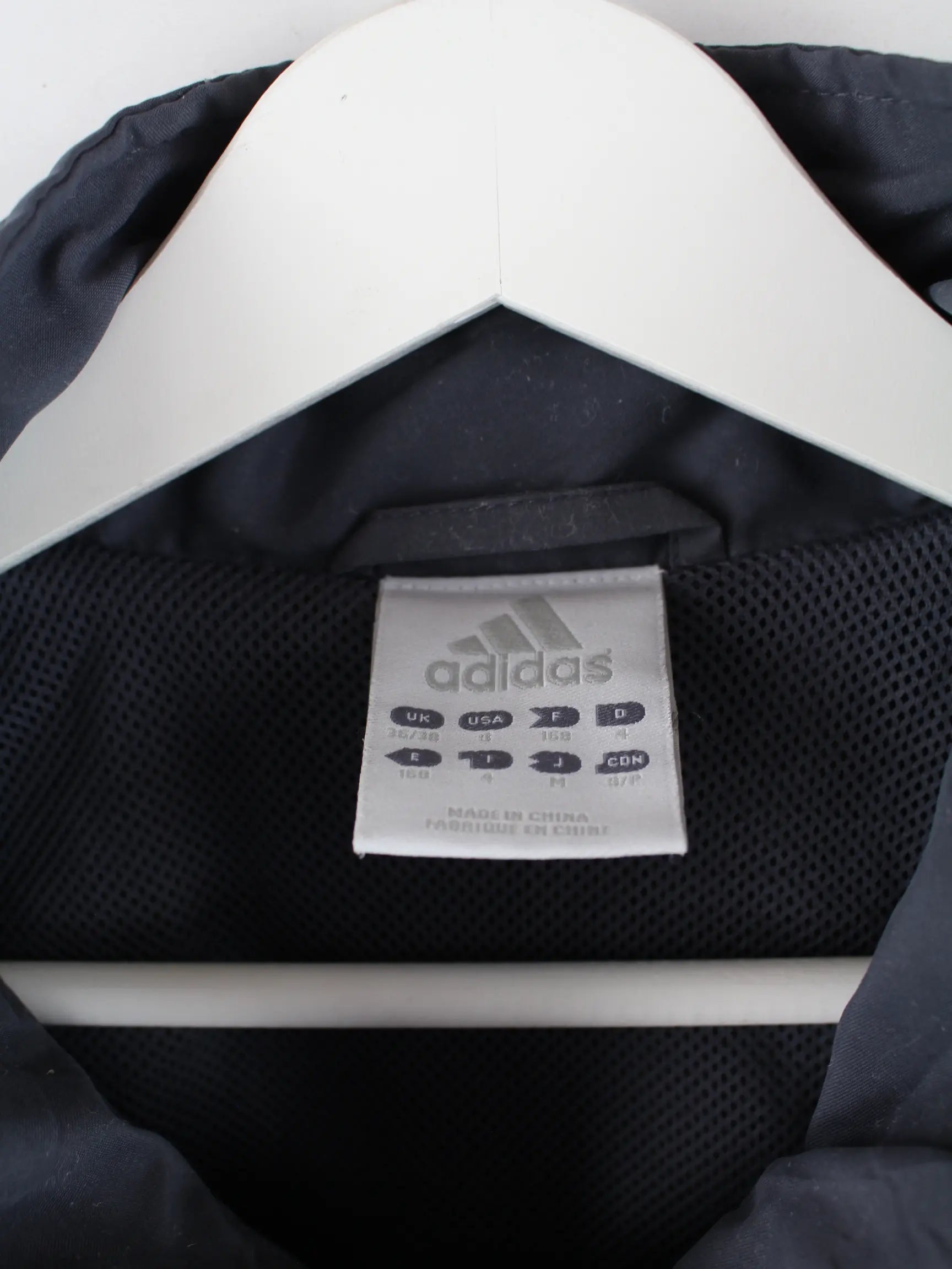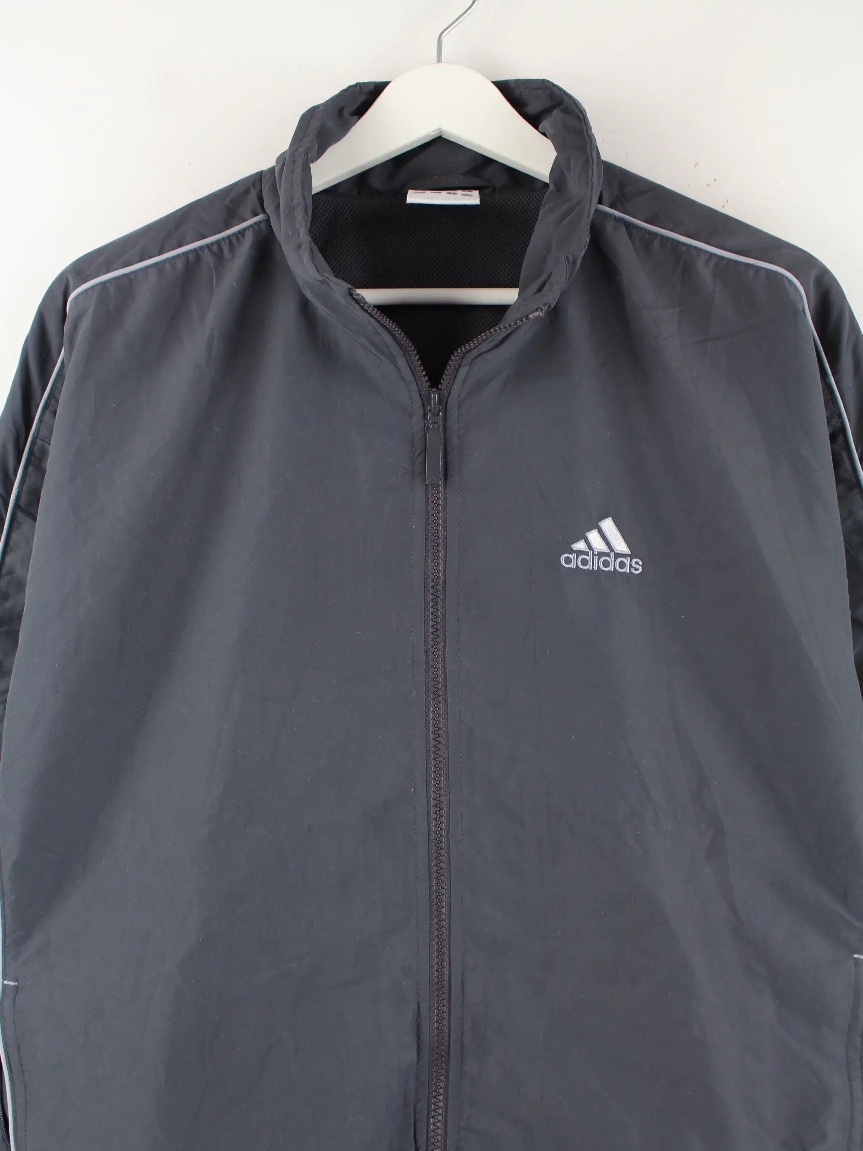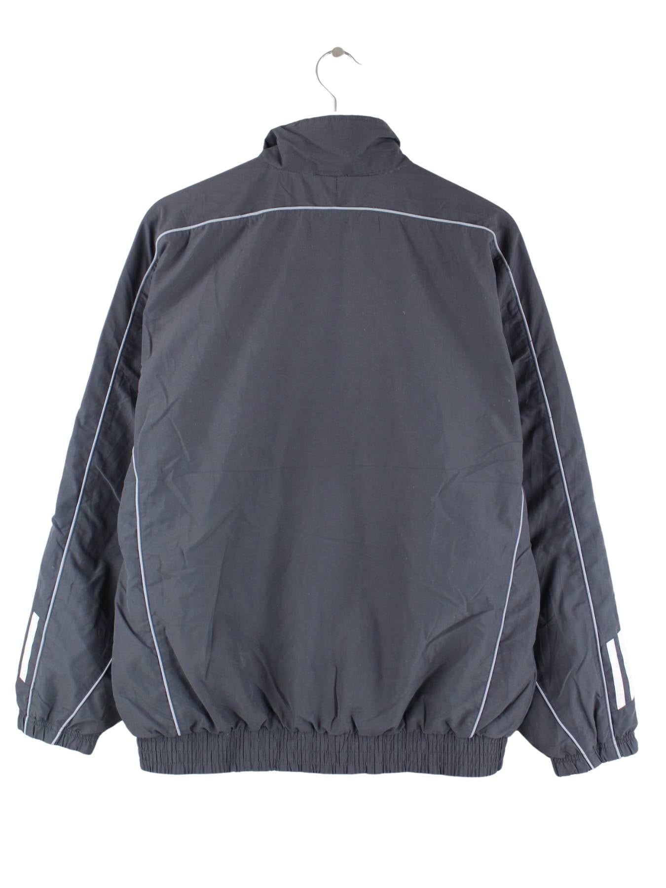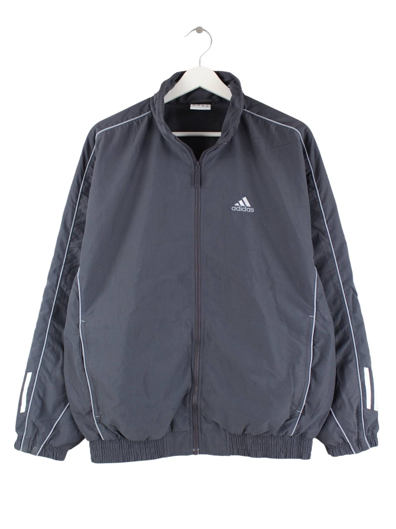 Graue Trainingsjacke der Marke Adidas in Größe M. Sie ist aus Synthetik hergestellt und in sehr gutem Zustand im Bestand.