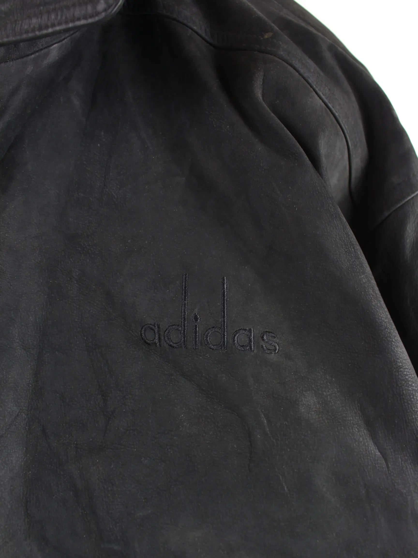 Jacke der Brand Adidas in Größe XL. Sie ist aus Leder hergestellt und in Schwarz zu haben.