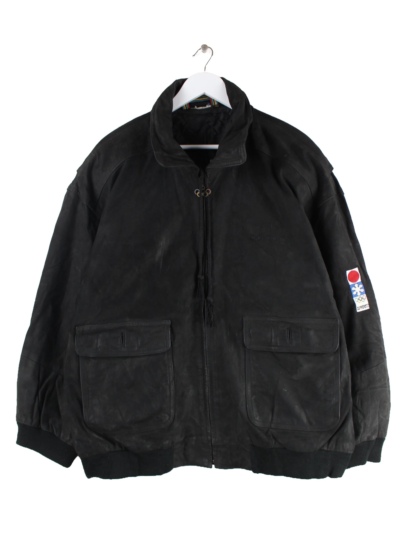 Adidas 1972 Vintage Sapporo Winter Olympics Leder Jacke Schwarz XL