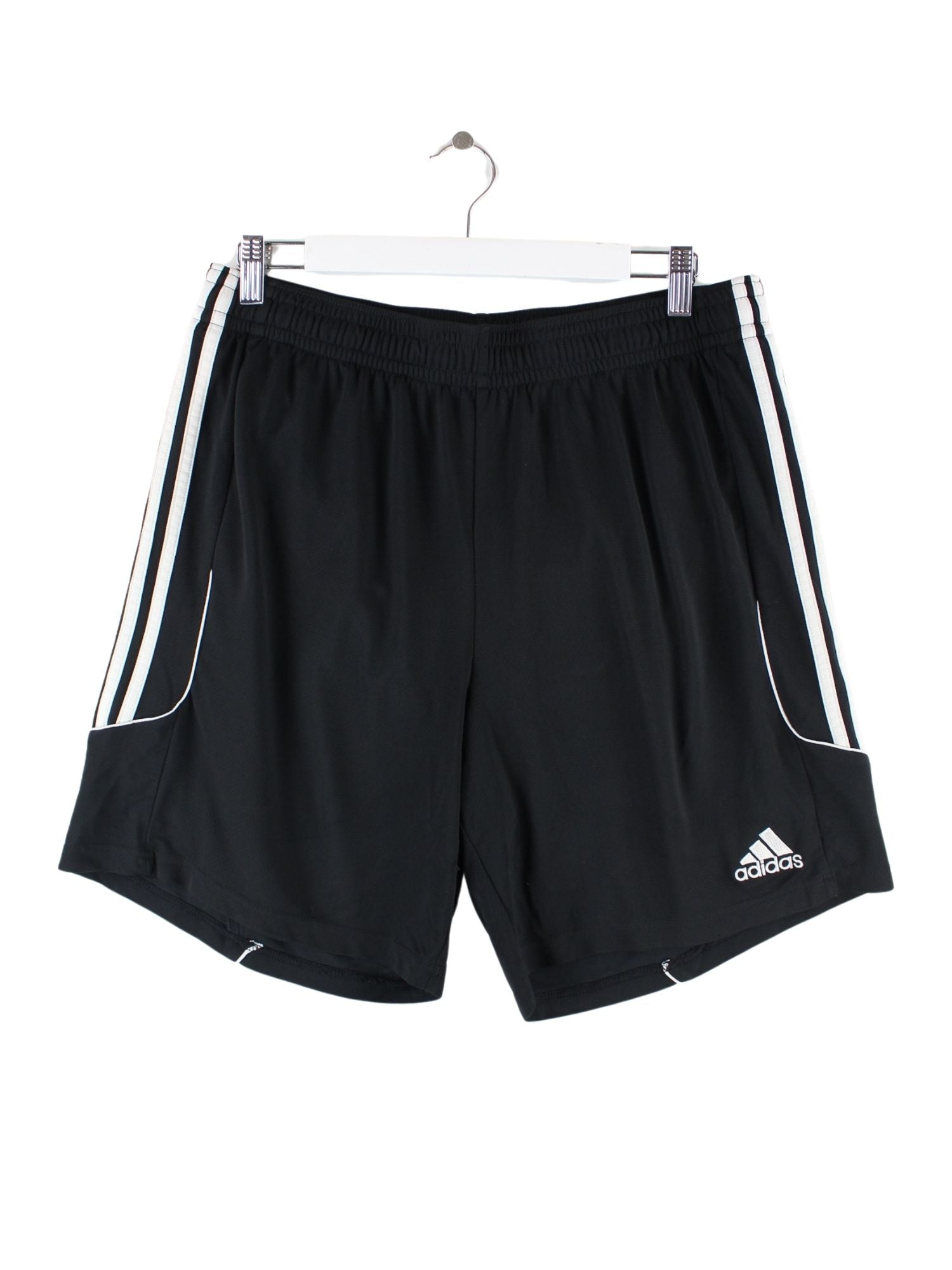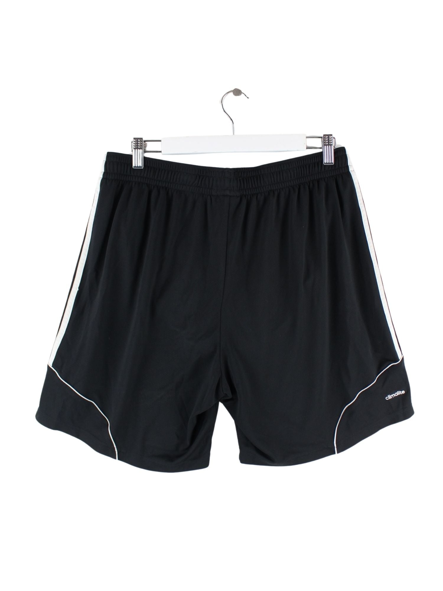 Schwarze Shorts des Labels Adidas in Größe XL. Sie sind aus Synthetik gemacht und in sehr gutem Zustand bei uns vorrätig.