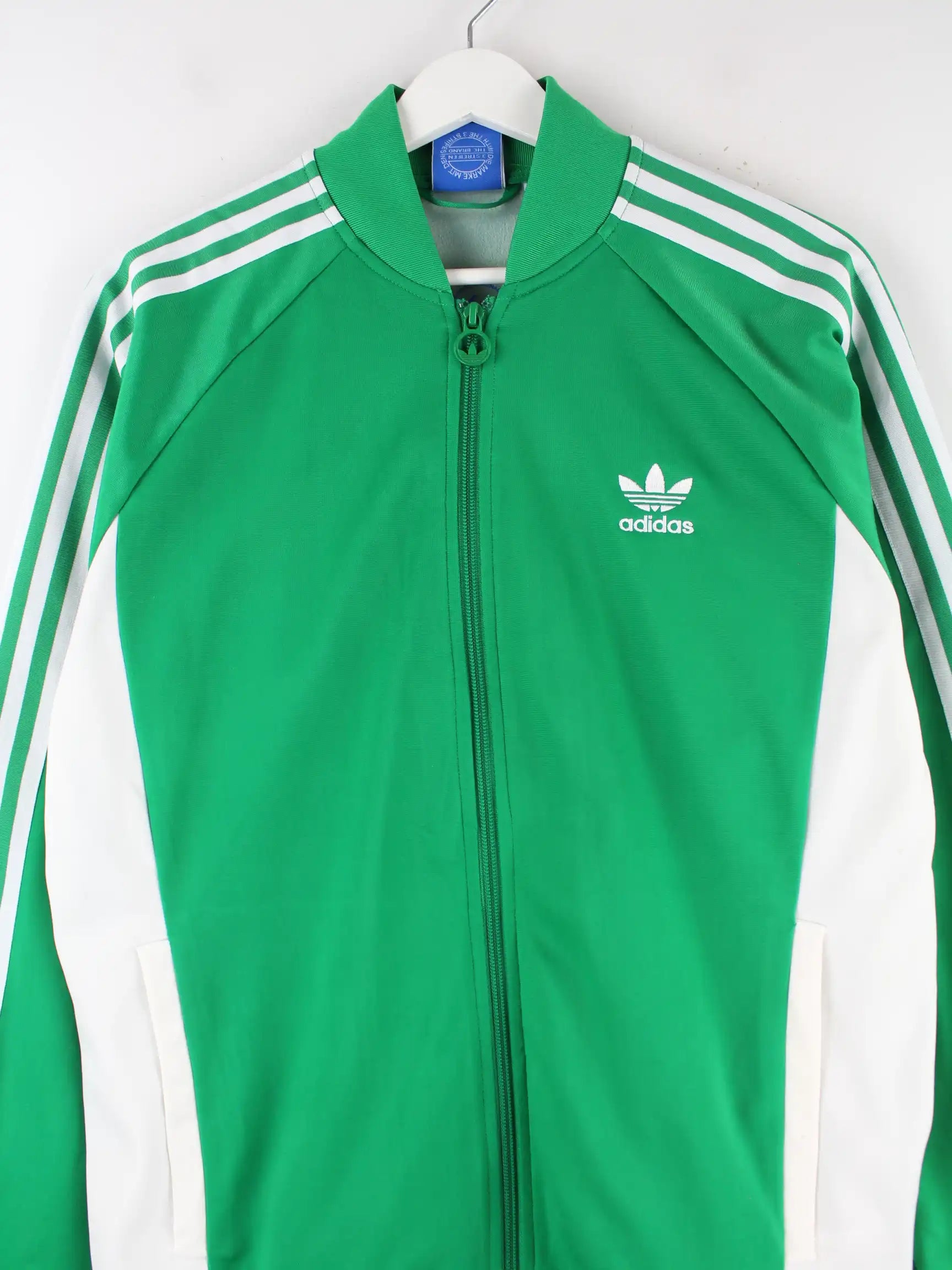 Grüne Trainingsjacke vom Brand Adidas in Größe M. Sie ist aus Synthetik produziert und in sehr gutem Zustand zu bekommen.