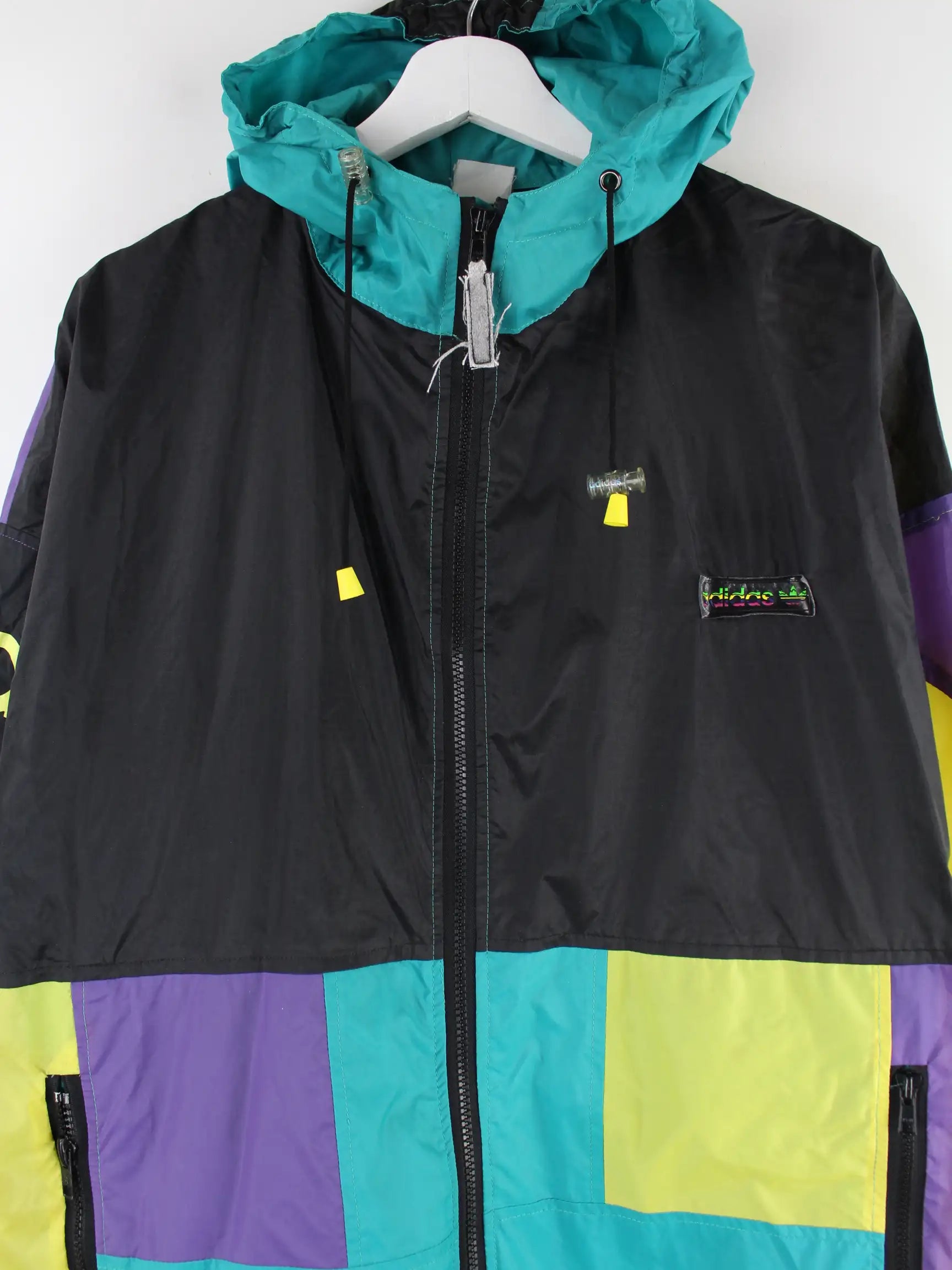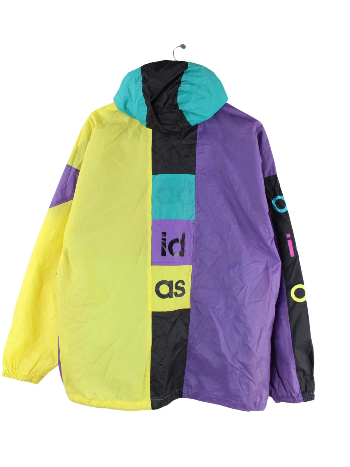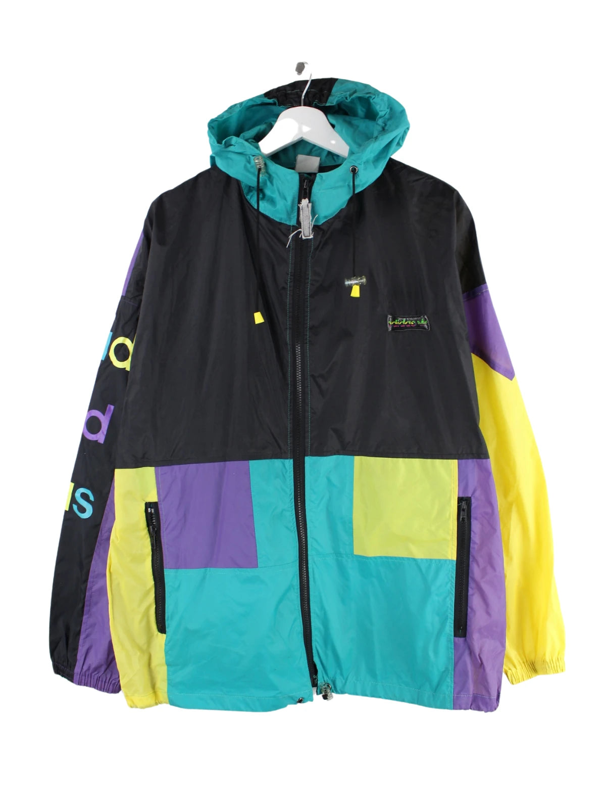 Mehrfarbige Leichte Jacke aus dem Hause Adidas aus den 70'ern in Größe XL. Sie ist aus Synthetik und in gutem Zustand bei uns zu bekommen. Mit chiquem Vintage Print.