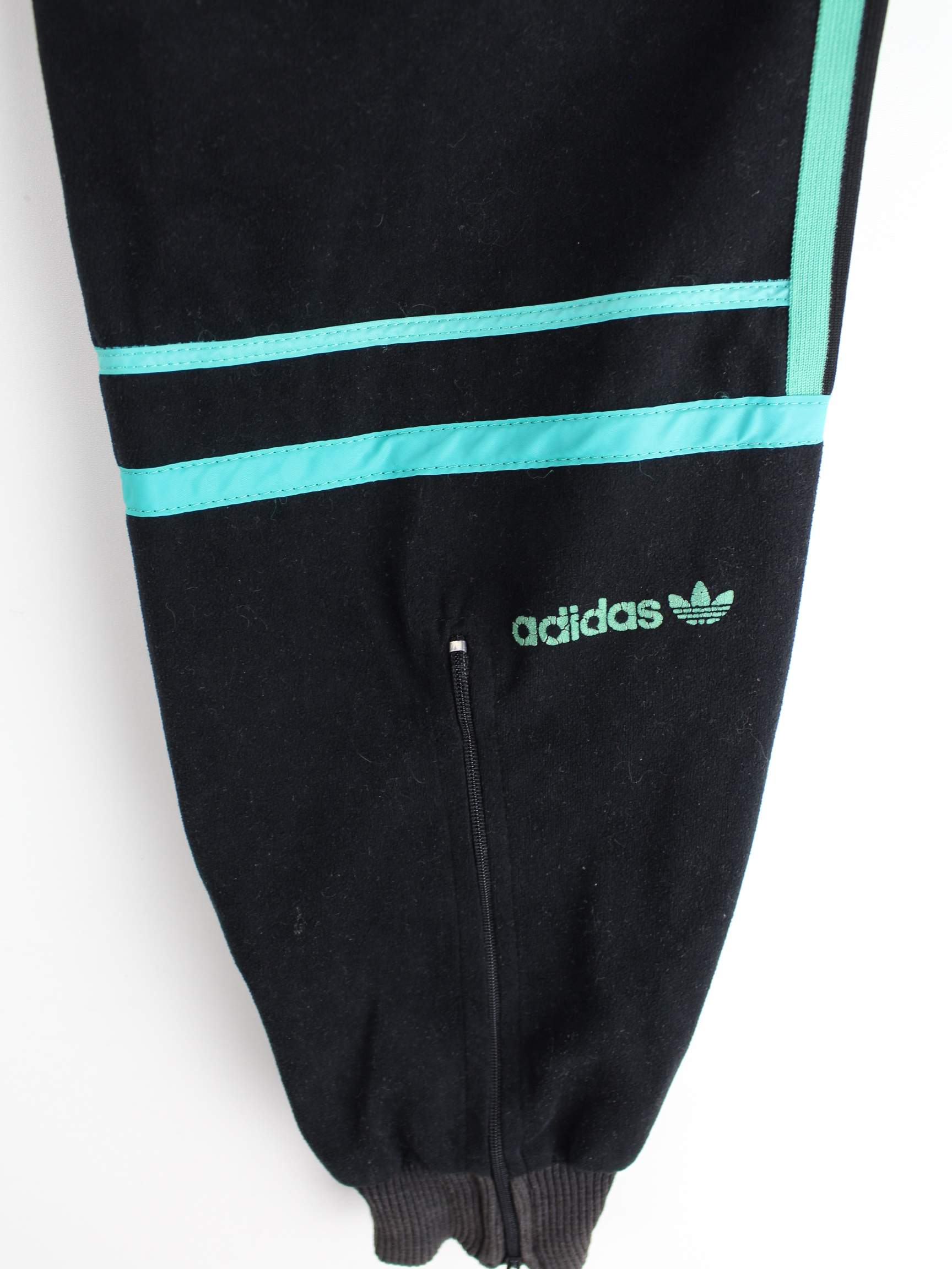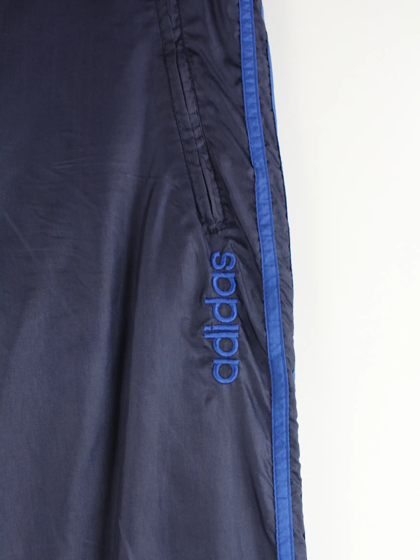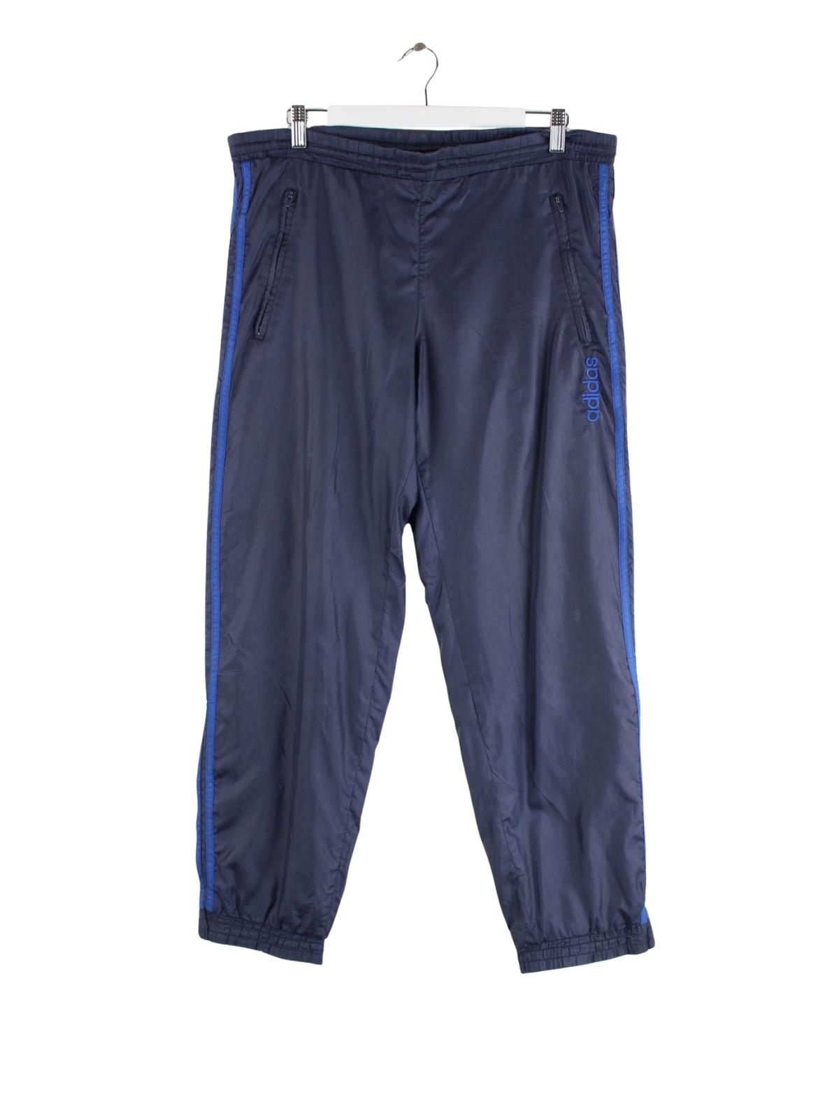 Blaue Track Pants der Marke Adidas aus den 80'ern in Größe S. Sie sind aus Synthetik hergestellt und in sehr gutem Zustand auf Lager. Mit seltenem World Print.