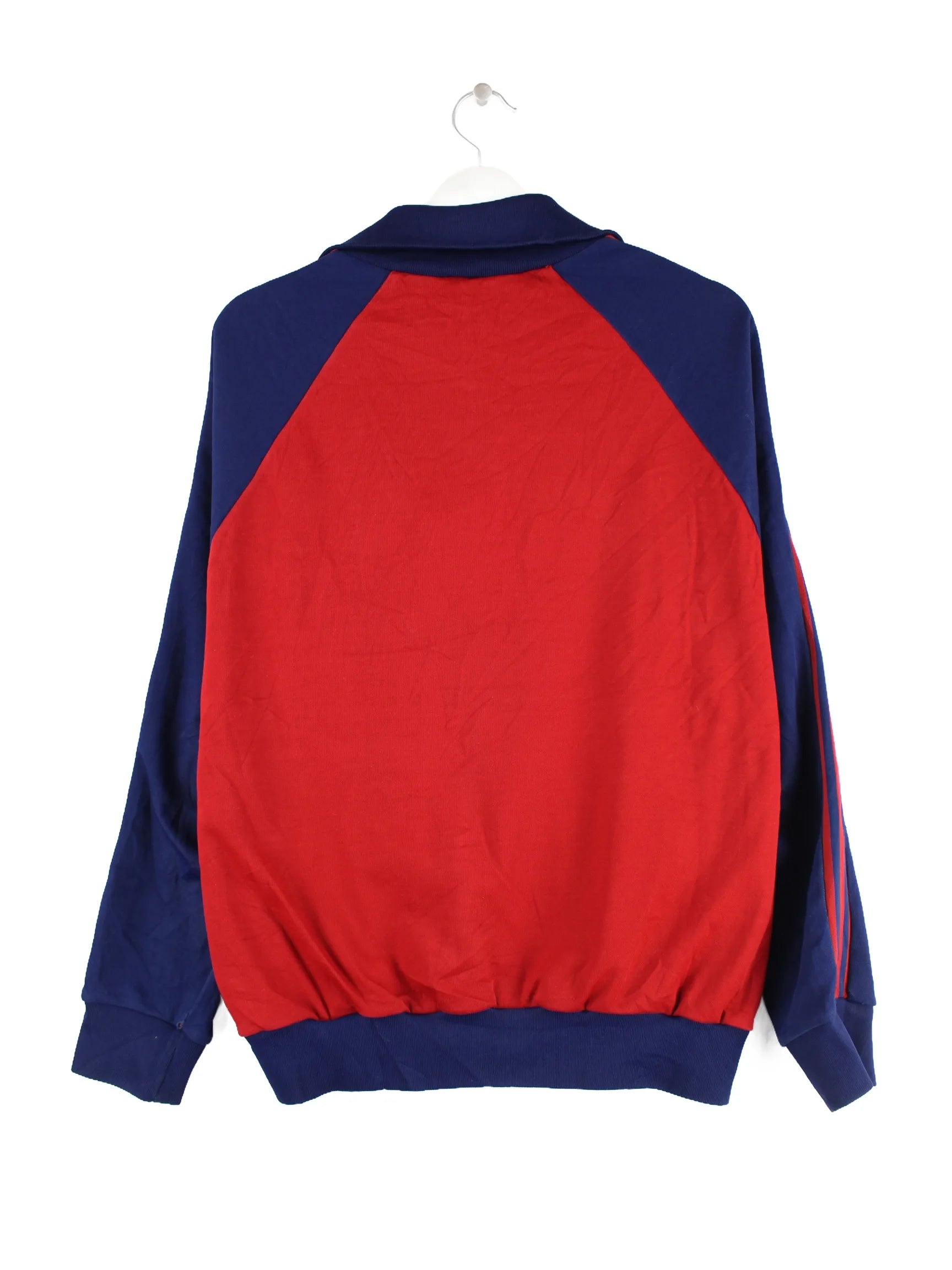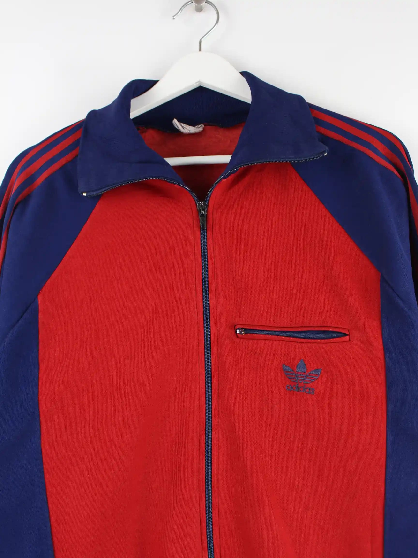 Trainingsjacke aus dem Hause Adidas in Größe M aus den 80'ern. Sie ist aus Synthetik gefertigt und in Rot in Stock.