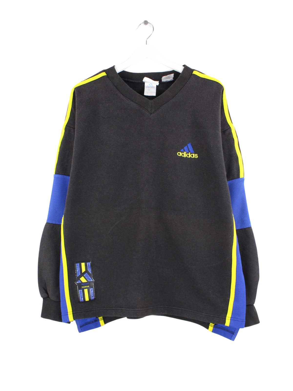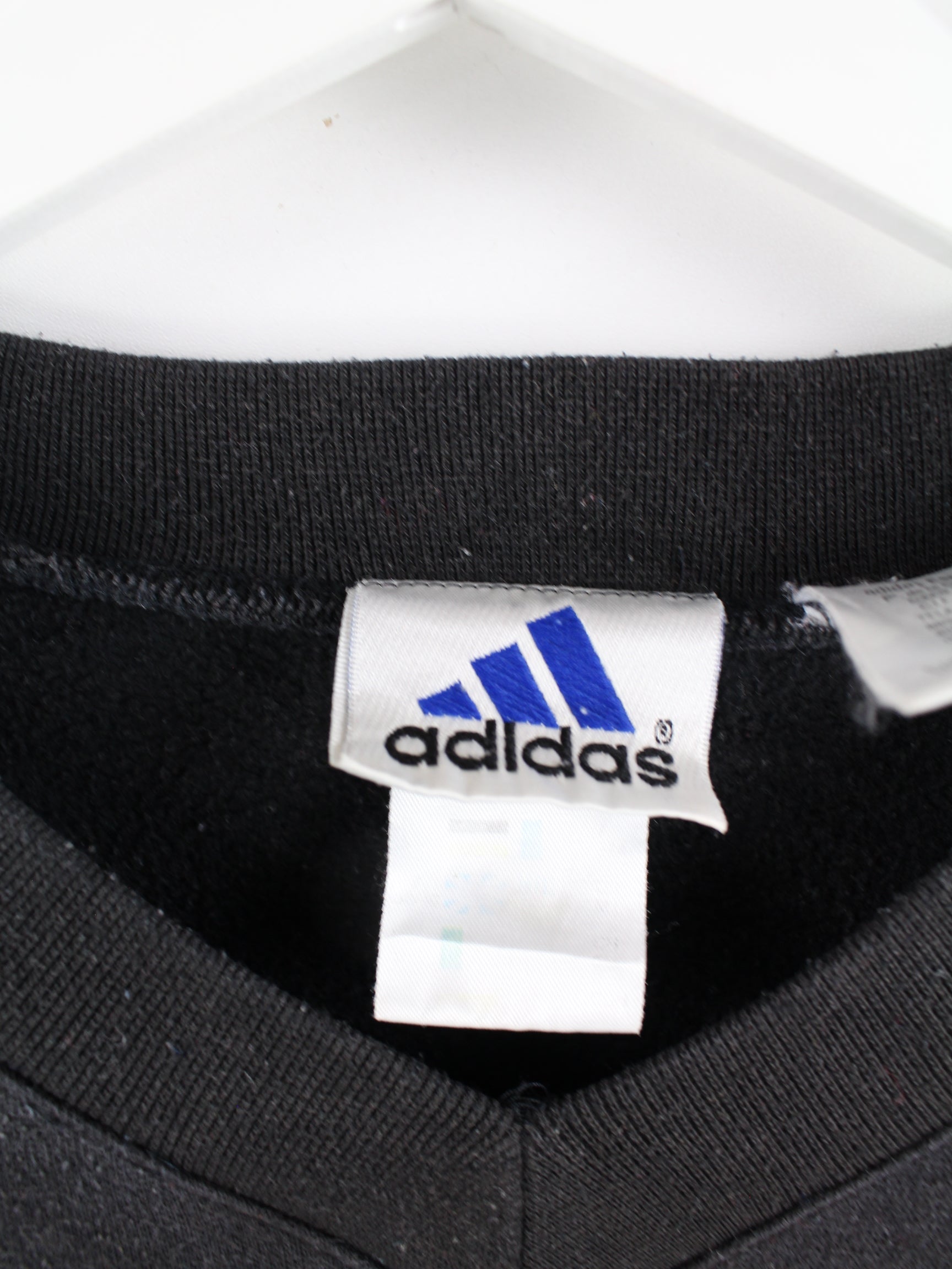Sweater des Labels Adidas in Größe L aus den 90'ern. Er ist aus einer Baumwollmischung hergestellt und in Schwarz zu bekommen.