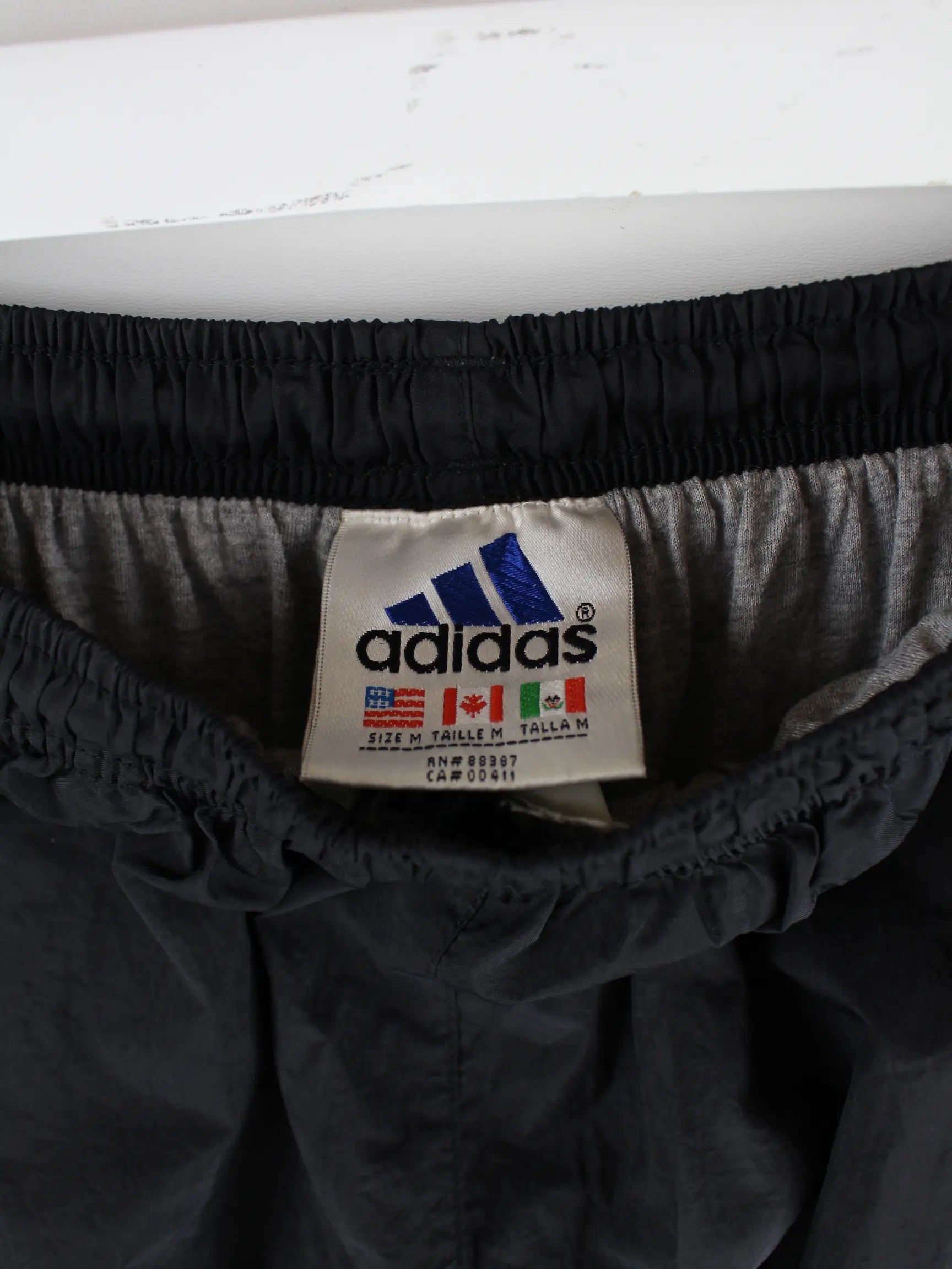 Track Pants der Marke Adidas in Größe M aus den 90'ern. Sie sind aus Synthetik und in Schwarz im Bestand.