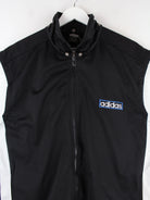 Trainingsjacke vom Label Adidas mit gestickten Motiven in Größe M aus den 90'ern. Sie ist aus Synthetik gefertigt und in Schwarz vorrätig.