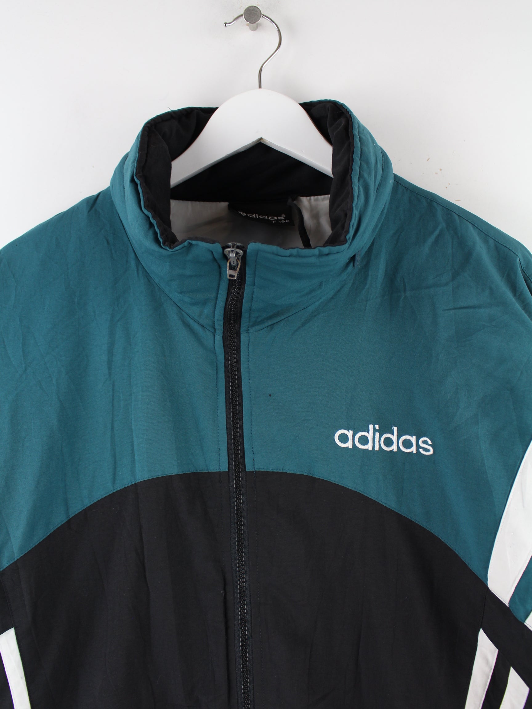 Jacke der Brand Adidas in Größe XL aus den 90'ern. Sie ist aus Synthetik hergestellt und in Schwarz lieferbar.