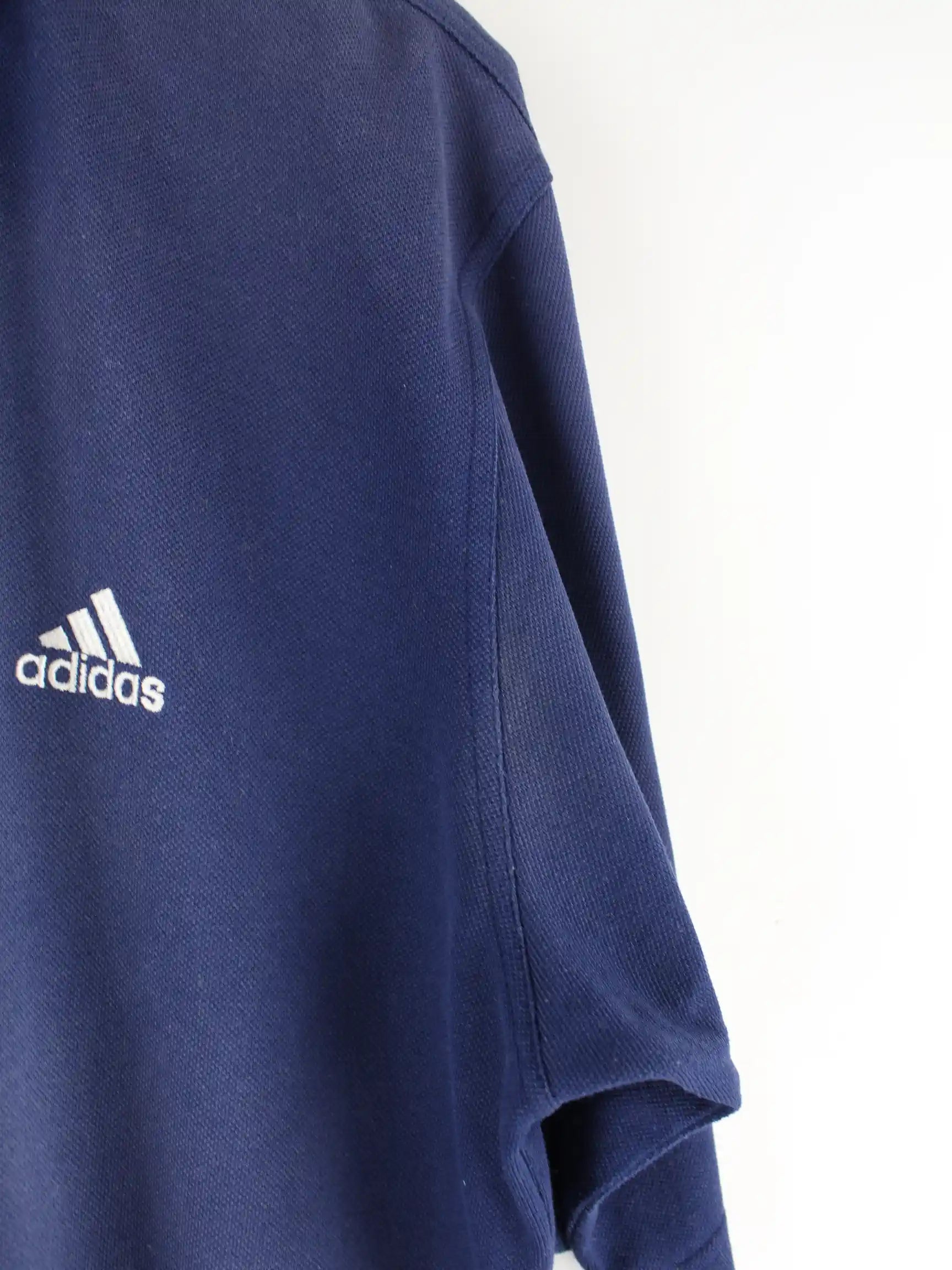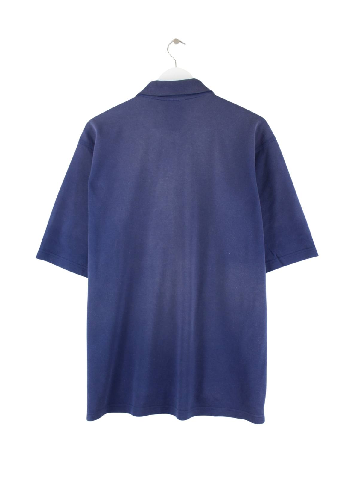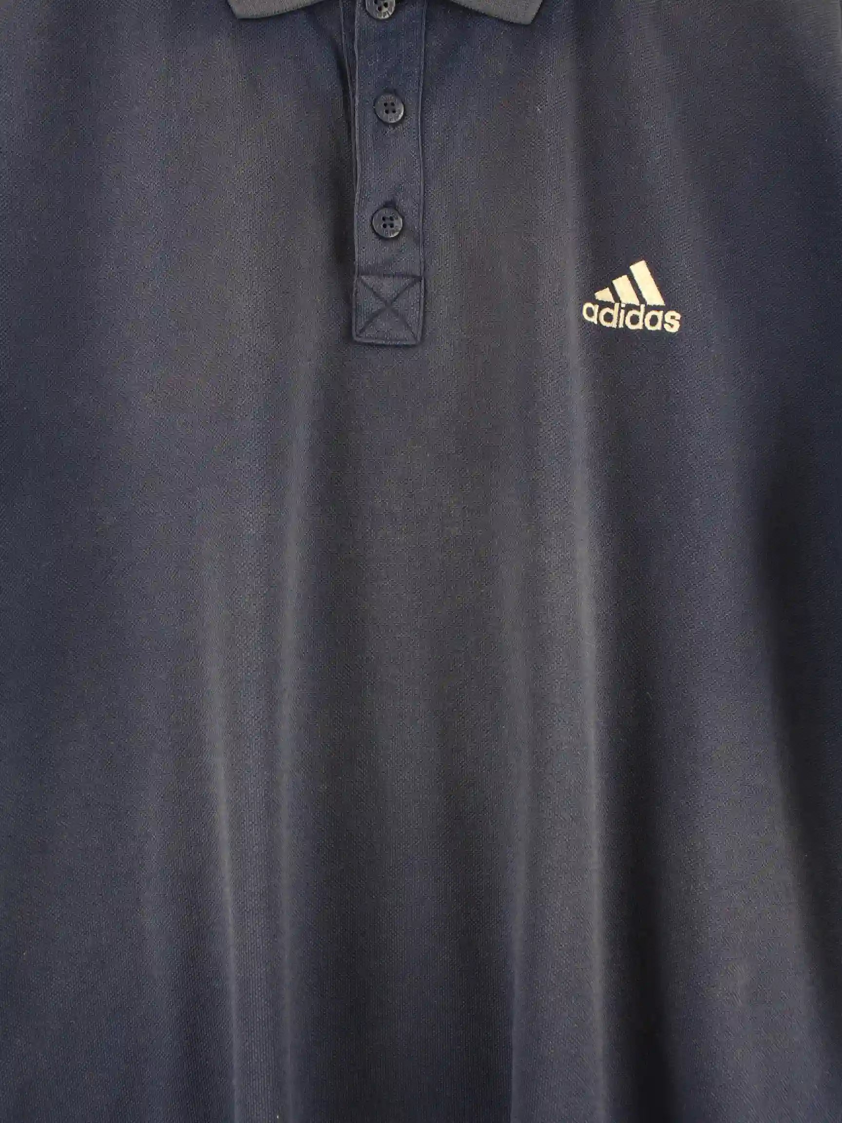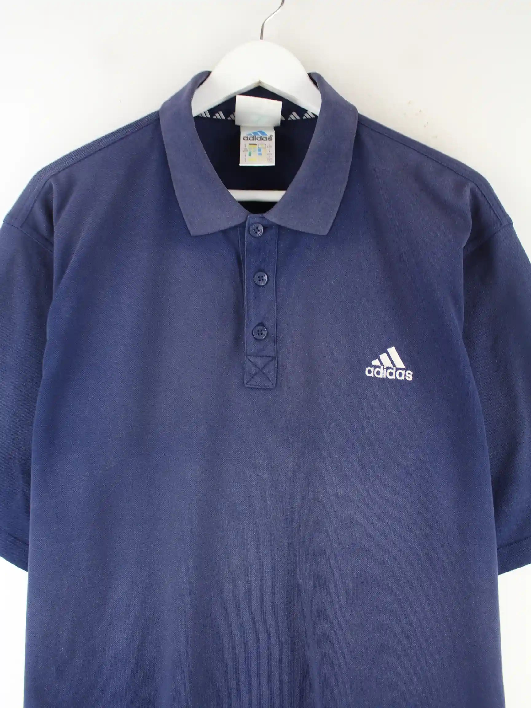 Blaues Poloshirt der Brand Adidas aus den 90'ern in Größe L. Es ist aus Baumwolle hergestellt. Den Zustand würden wir als 'In Ordnung' bezeichnen (vergl. Bilder).