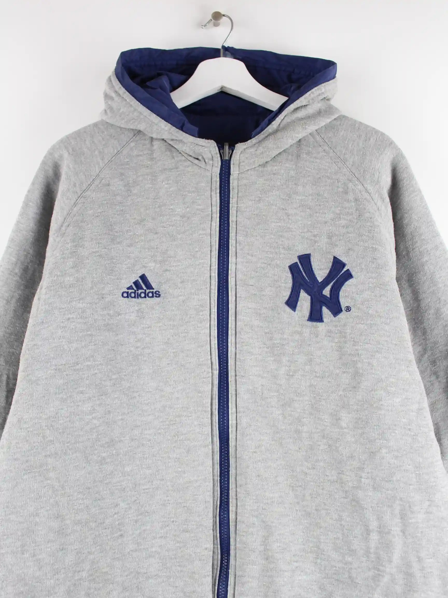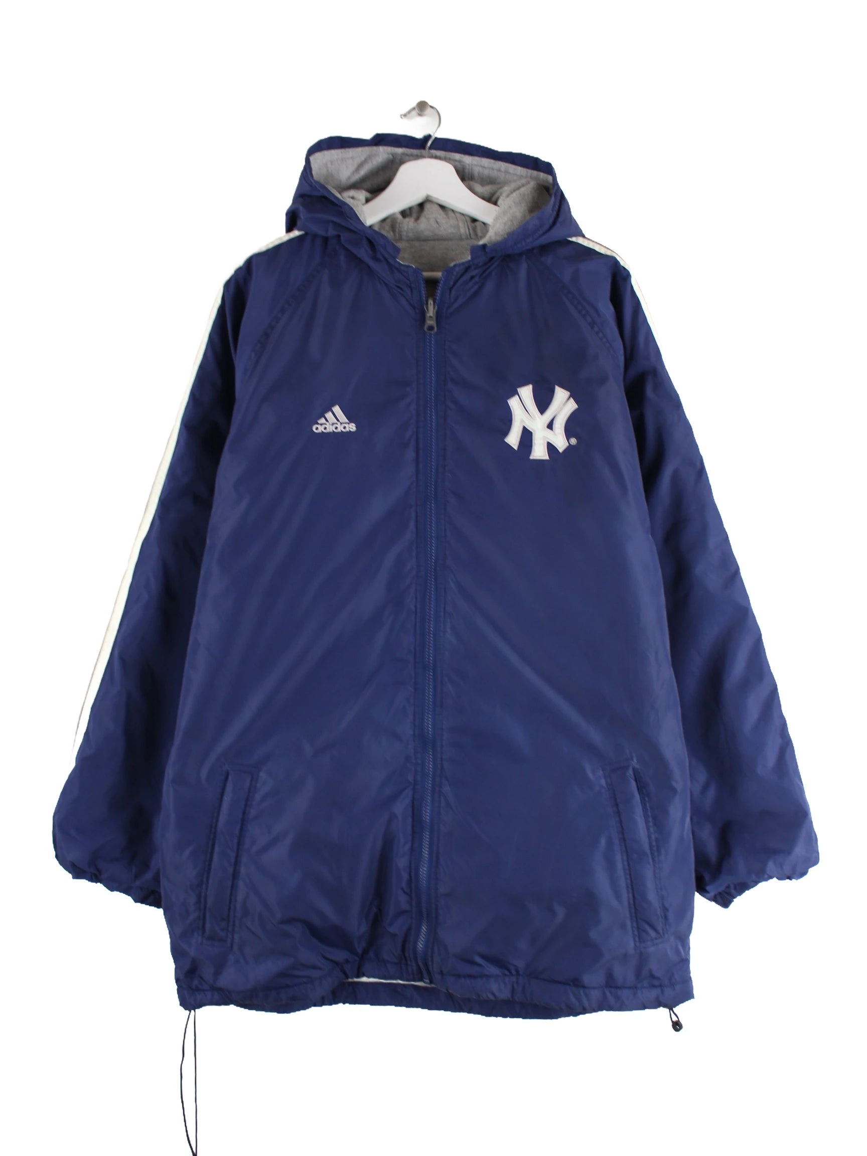 Adidas 90s Vintage Yankees 3-Stripes Wende Parka Jacke Blau XL