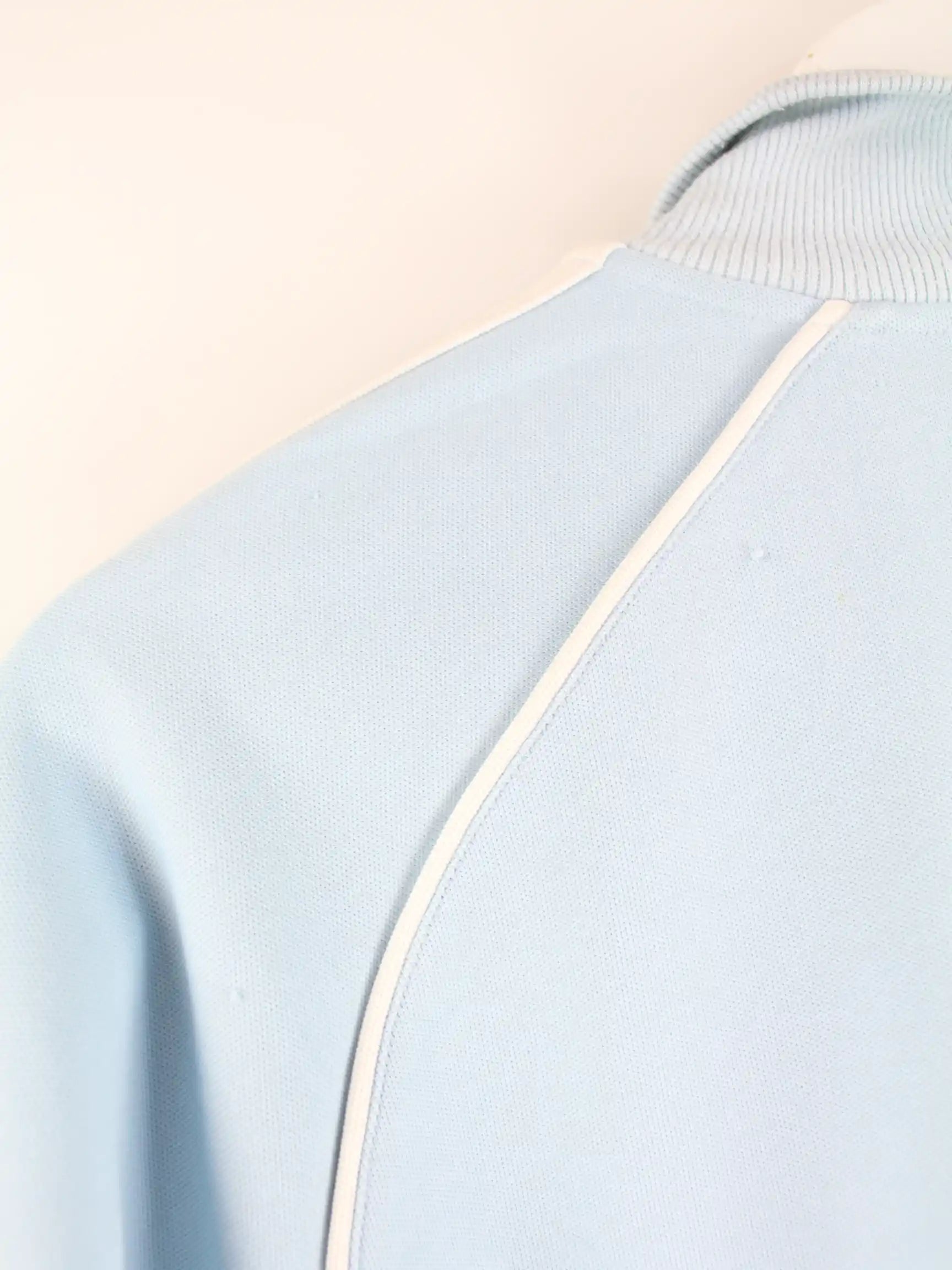 Blaue Trainingsjacke vom Brand Adidas in Größe S. Sie ist aus Synthetik und in gutem Zustand in Stock.