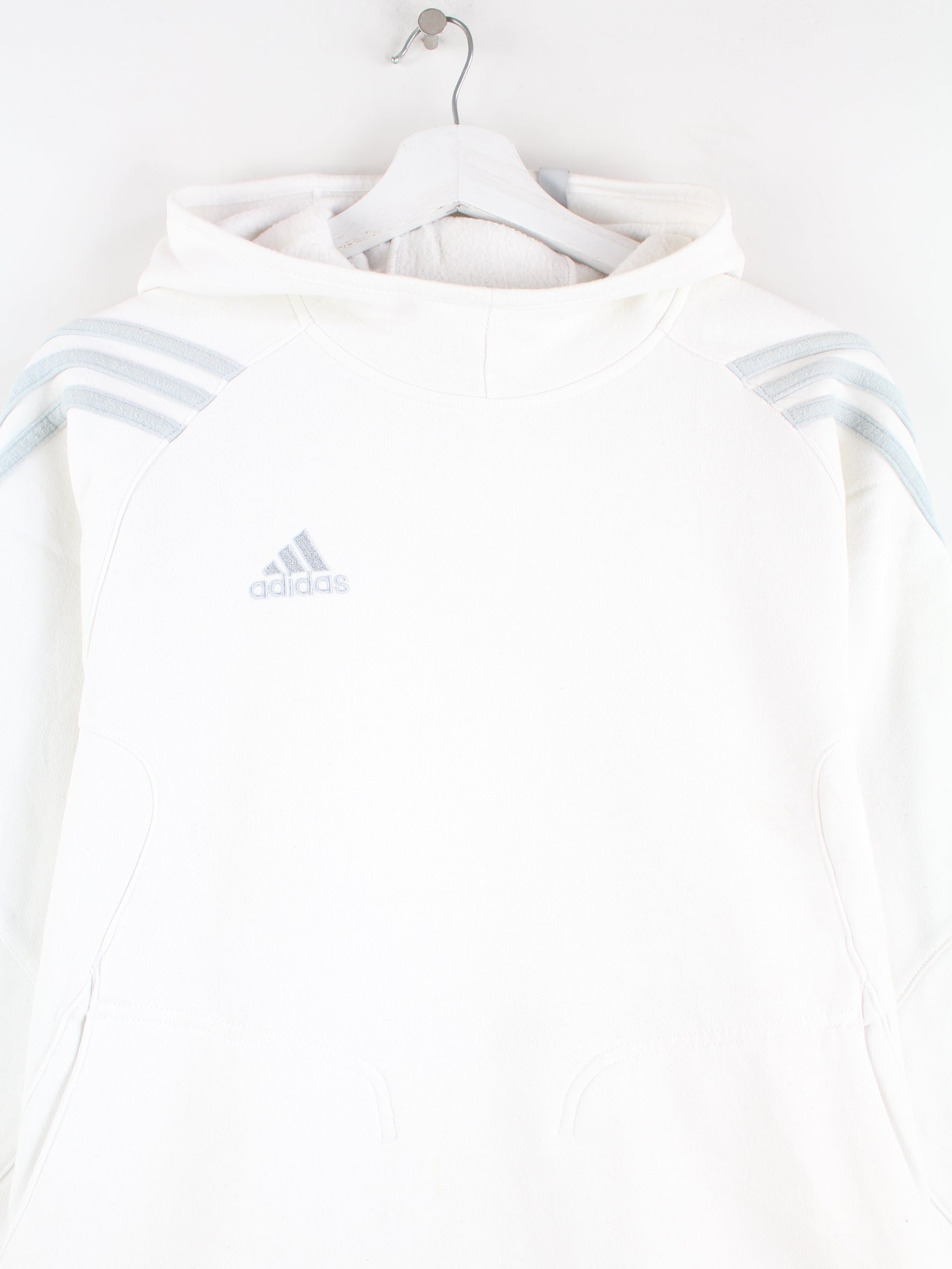 Hoodie des Labels Adidas in Größe S. Er ist aus einer Baumwollmischung gemacht und in Weiß zu bekommen.